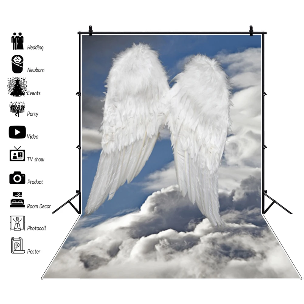 Виниловый фон для фотосъемки новорожденных Laeacco Angel Devil Wings Cloud