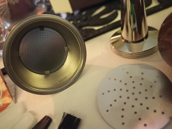 Супер хорошо. Я колебался, прежде чем купить его, когда он мне не нужен, а затем сказал мне, что кофе, который я положил в капсулу, был недостаточно наложен. Поэтому я решил купить его, и на самом деле он сделан из металла, он тяжелый, кофе очень хорошо сжат в капсуле, кофе лучше. Поэтому рекомендуется при использовании многоразовых капсул Быстрый прием, хорошая упаковка короче это топ дома
