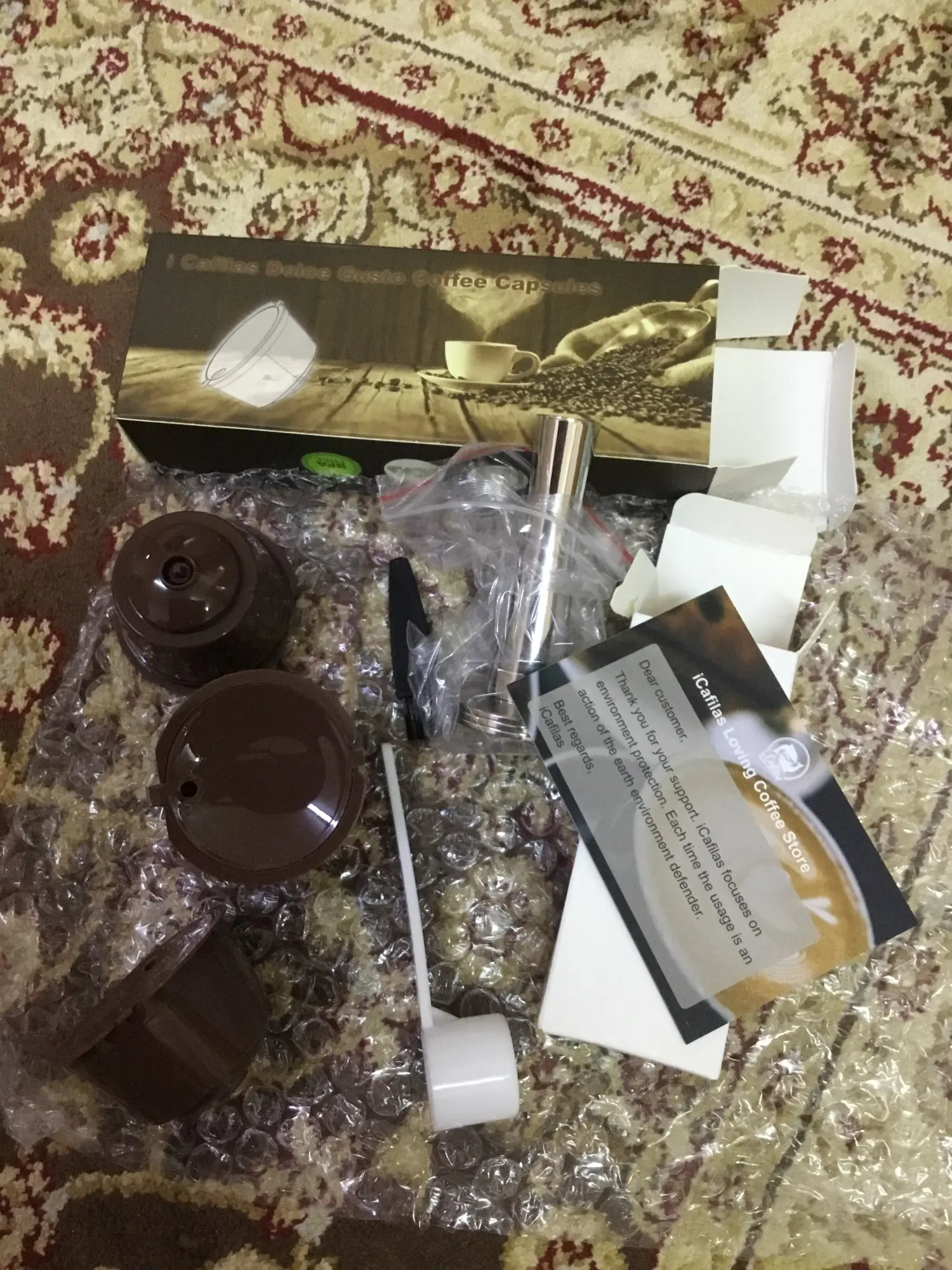 Заказ пришел быстро, я еще не просмотрел его, Он поставляется с 3 многоразовыми капсулами, ложкой для очистки и молотком для нажатия.