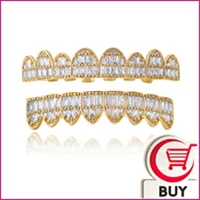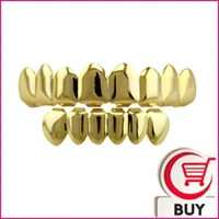 Золото Цвет зубы грили для женщин и мужчин с двумя зубьями рот Gril...