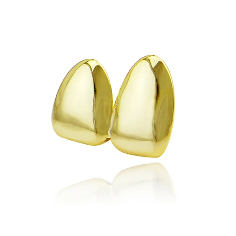 Заводская низкая цена, 2 шт., ювелирное изделие для зубов, настоящее золото, позолоченные зубы, в стиле хип-хоп, крутые мужские поддельные зубные зубы, США, горячая распродажа, подарок на Хэллоуин