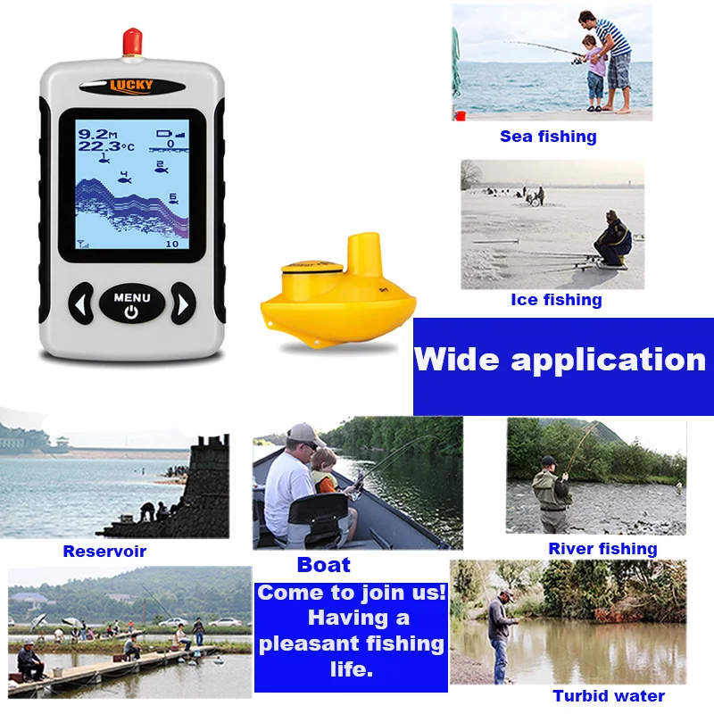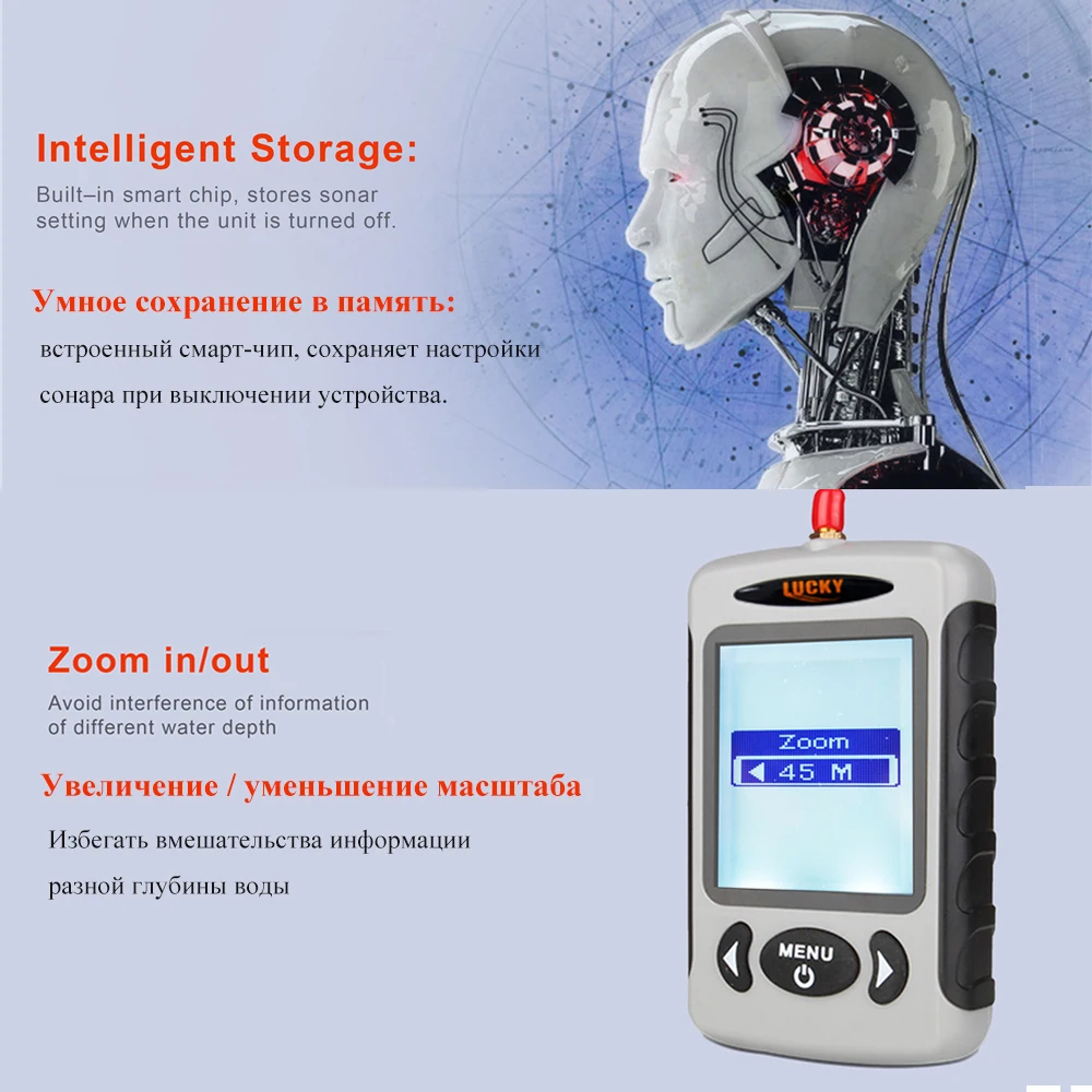 100% оригинал, Лаки, рыболокатор FFW718, беспроводной, Русский Меню, сонар, глубина для льда 40 м/120 футов, для льда, океана, реки, озера, моря, лодки, рыбалки