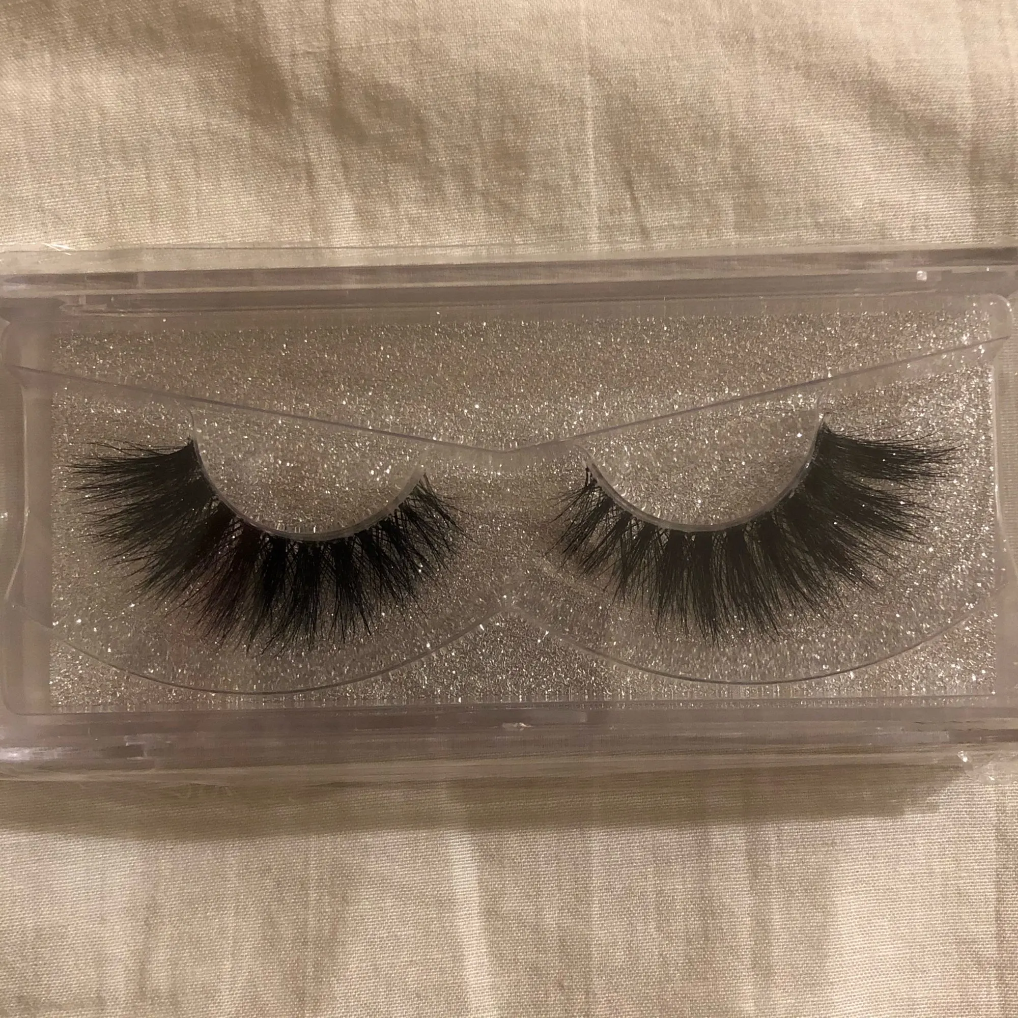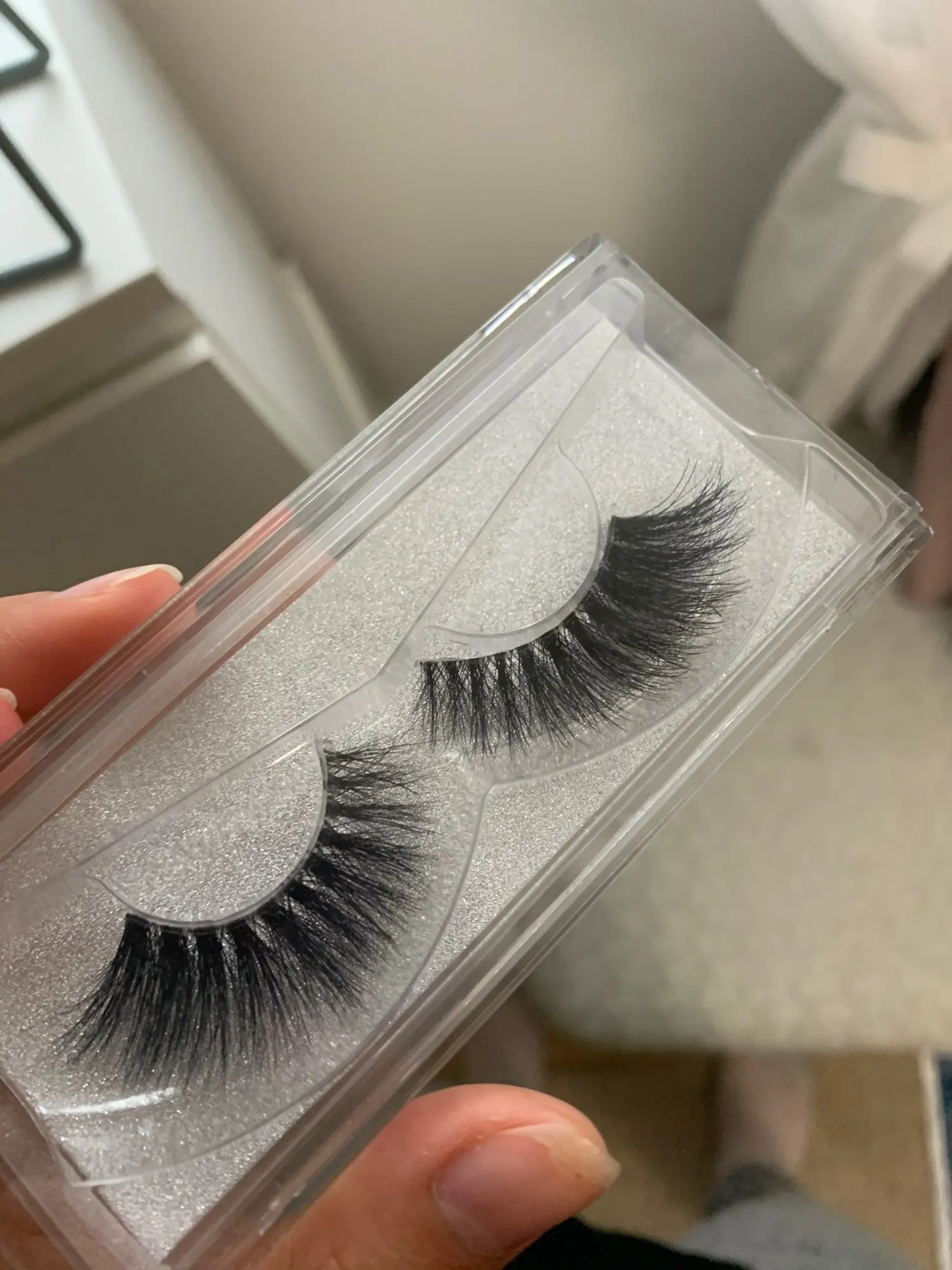 Ресницы выглядят хорошо. Прозрачная нить толстая, я ожидал, что она будет более тонкой! Упаковка очень милая.