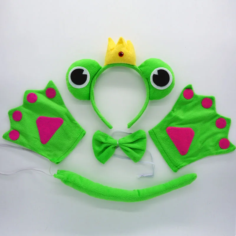 Повязка на голову с зелеными животными и хвостом уха, бант, перчатки, костюм лягушки для вечеринки, детский женский костюм на день рождения вечерние вечеринку, подарок на Пасху, День святого Валентина