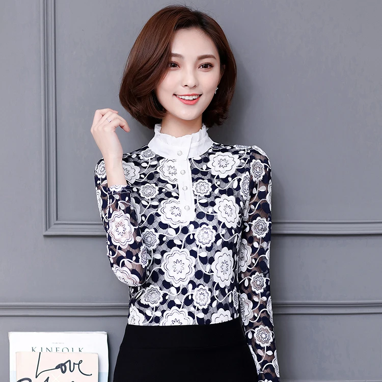 Новинка 2021 модная блузка женская брендовая рубашка тонкая пирнированная рубашка женская кружевная блузка с длинными рукавами модные топы 36i 25