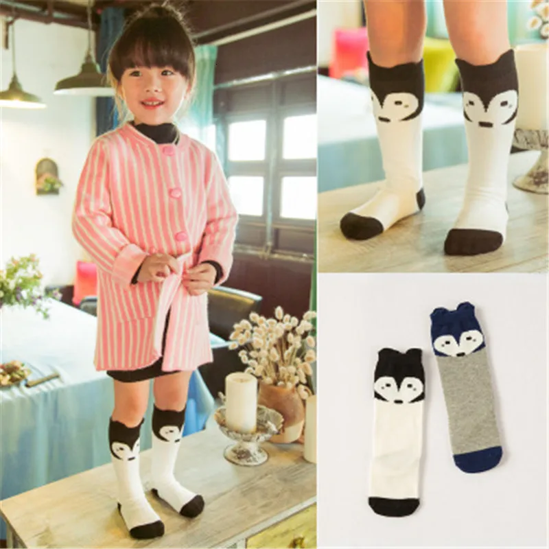 Детские длинные носки до колена, хлопок, для мальчиков и девочек, с мультяшным принтом кота, кролика, лисы, белки, весна-осень