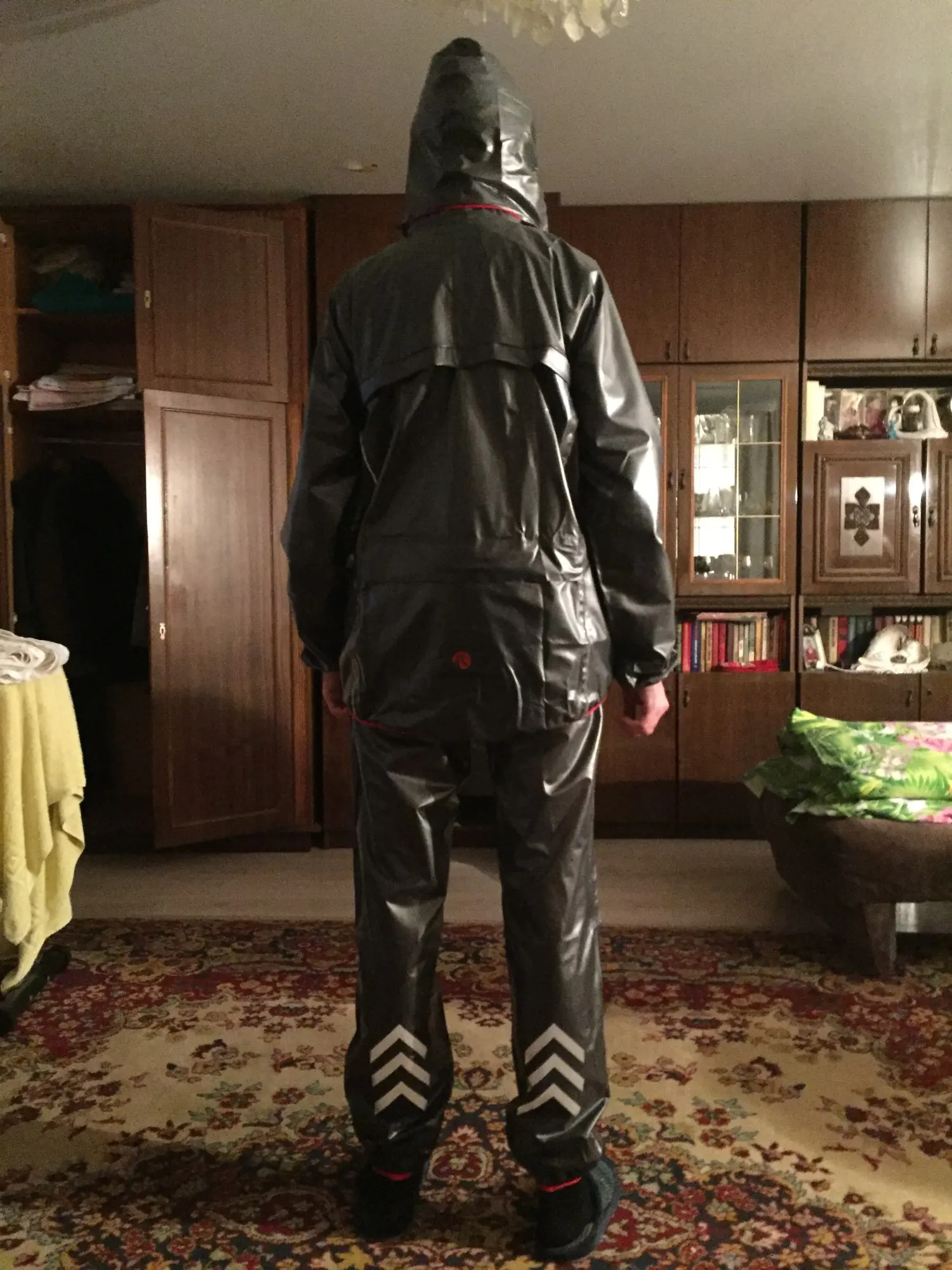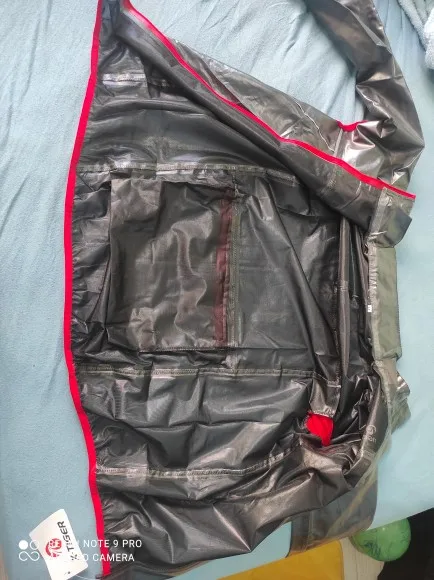 Заказывал размер 3xl штанов и 2xl куртку (написал это в комментарии к заказу), в итоге пришли и штаны и куртка одного размера 3xl. Чехол в комплекте только один, помещаются только штаны, как будто и для куртки тяжело было выслать тоже, пришлось отдельно заказывать. Капюшон прячется в куртку под молнию, но фиксация на нем убогая, мало того, что шнурки торчат на пол метра, чуть ли не до пояса, так еще и не фиксируют толком нормально. Я не доволен заказом