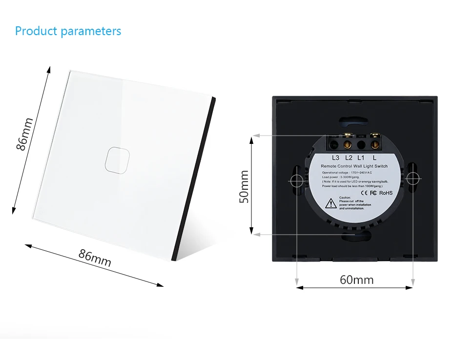 Настенный переключатель дистанционного управления для умного дома, стандарт ЕСВеликобритании, 1 пост, 1 канал, RF 433 МГц, беспроводной пульт дистанционного управления, сенсорный выключатель света