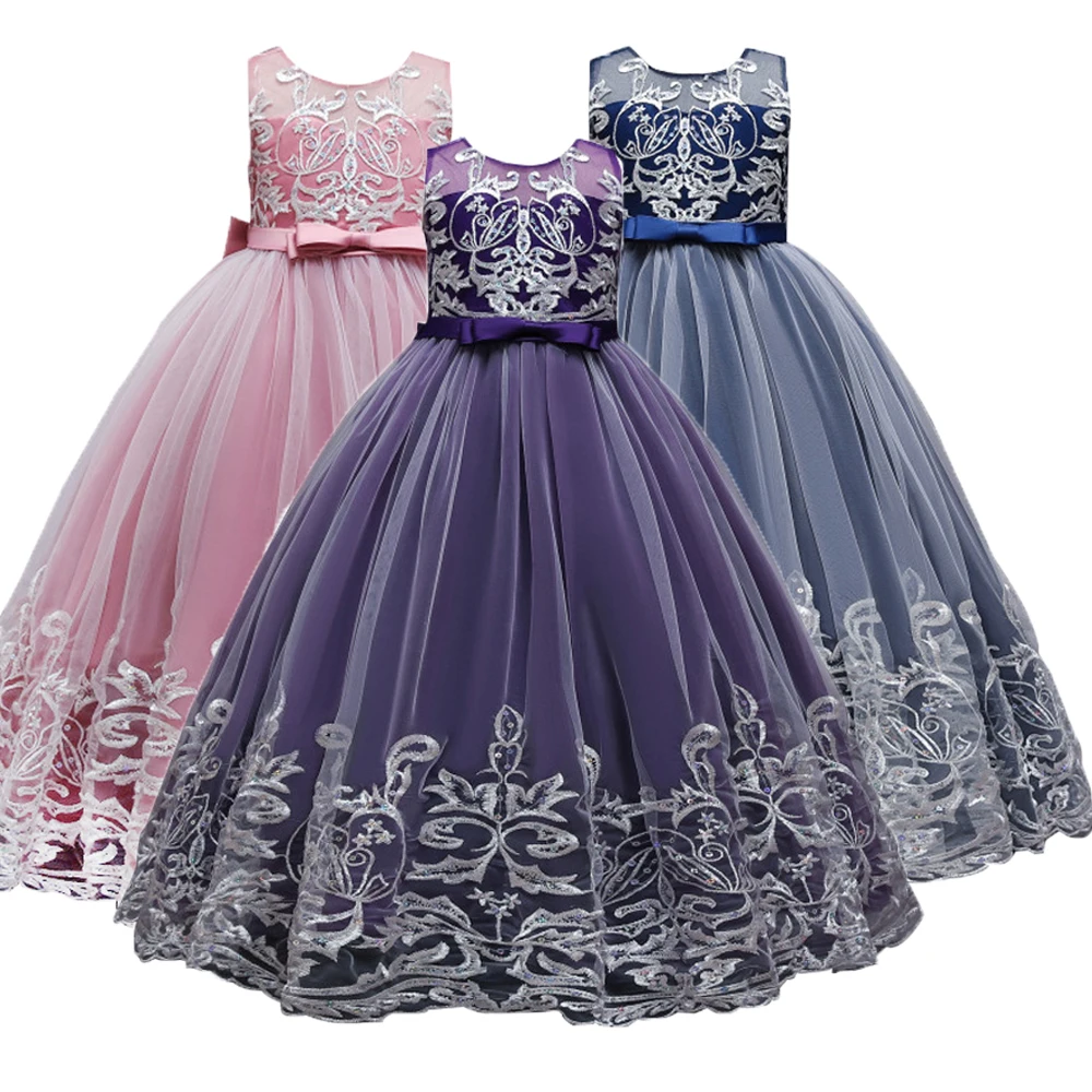 Официальное вечернее платье с цветочной вышивкой для девочек на ден...