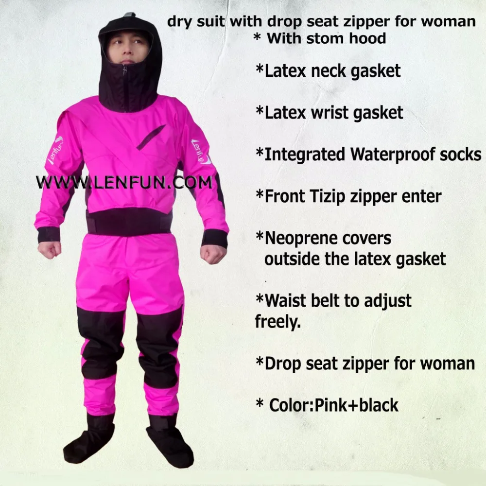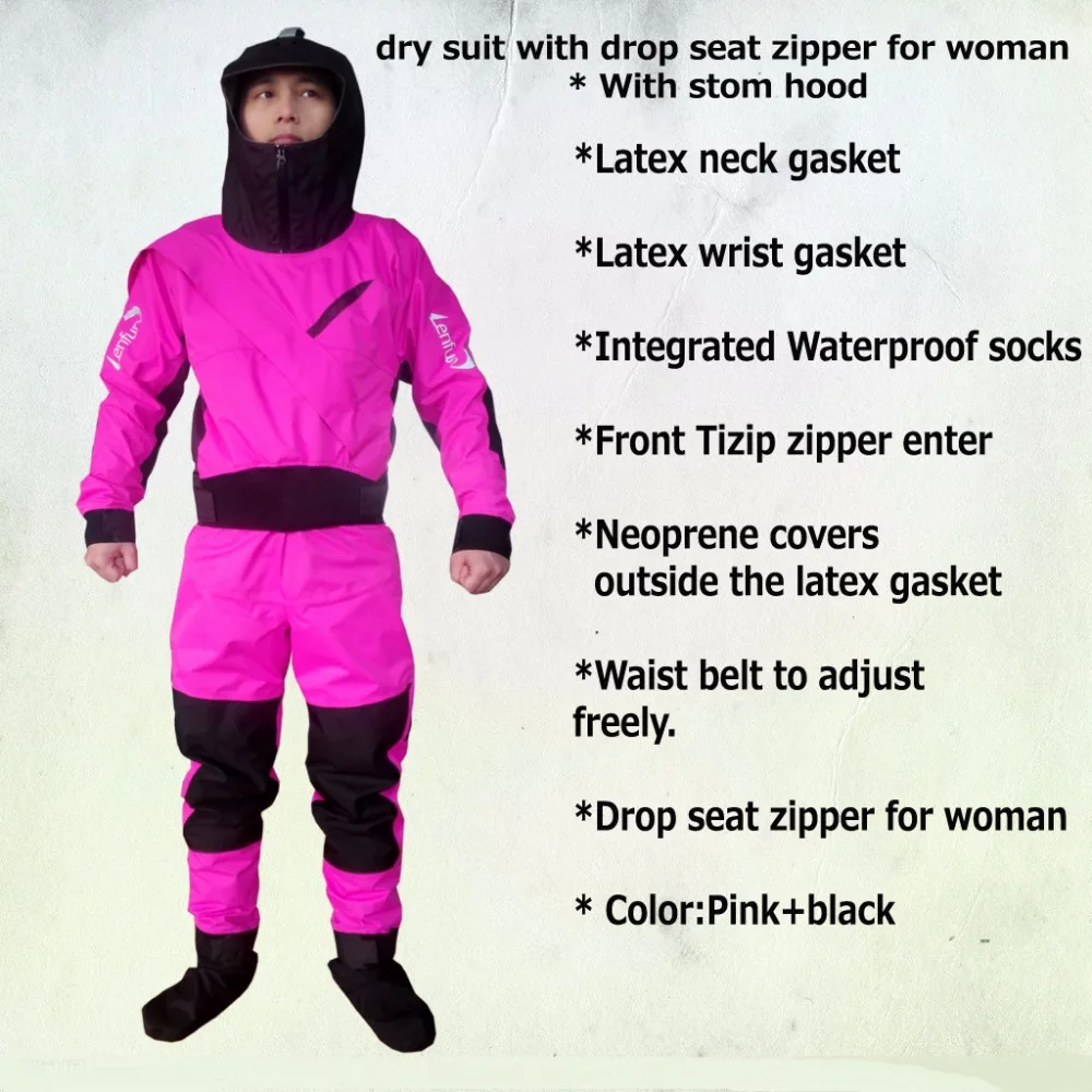 Новый полный сухой костюм, передняя застежка-молния с капюшоном, сухие костюмы с сиденьем, сухие костюмы для белой воды, байдарки, плавания, рыбалки