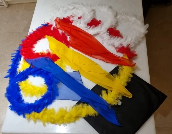 Разноцветные волшебные фокусы с изображением перьев, полный набор с шарфом, приближение, реквизит, иллюзия, Магическая Комедия