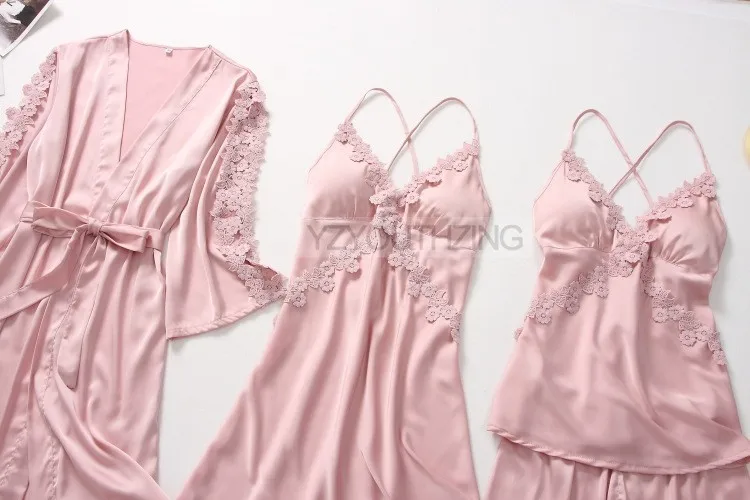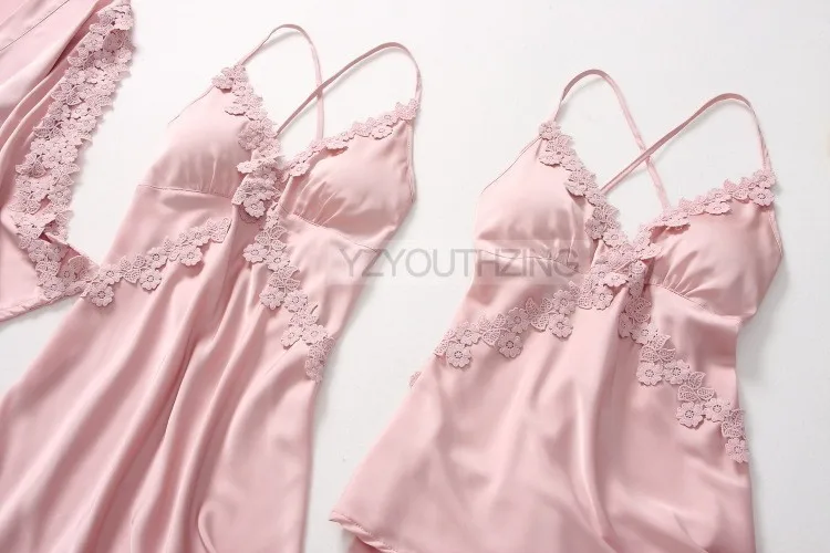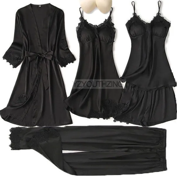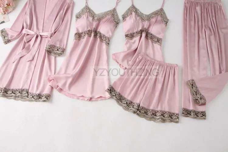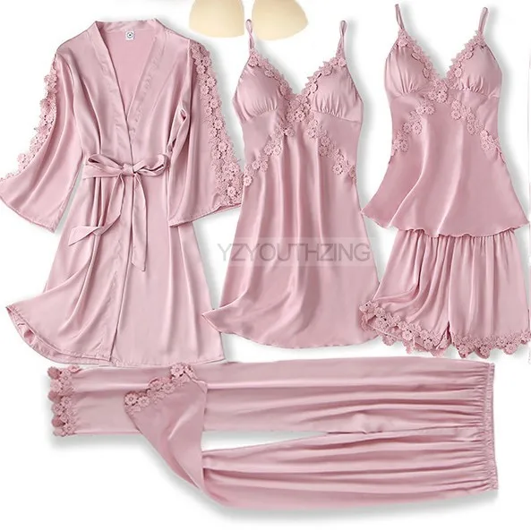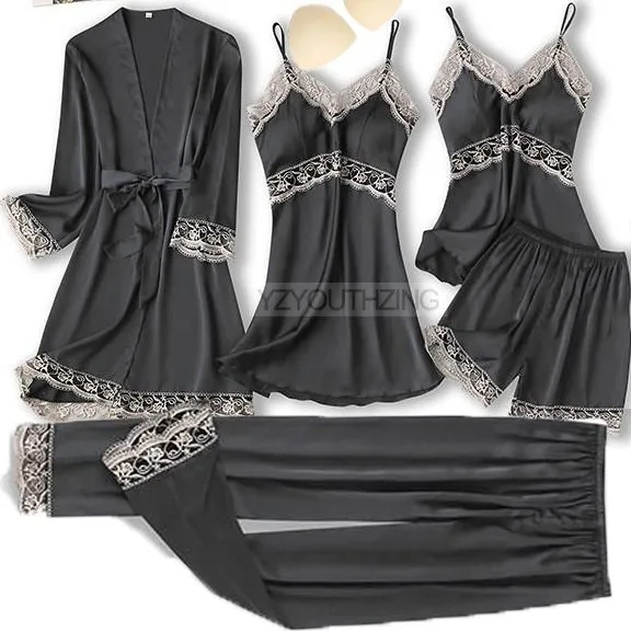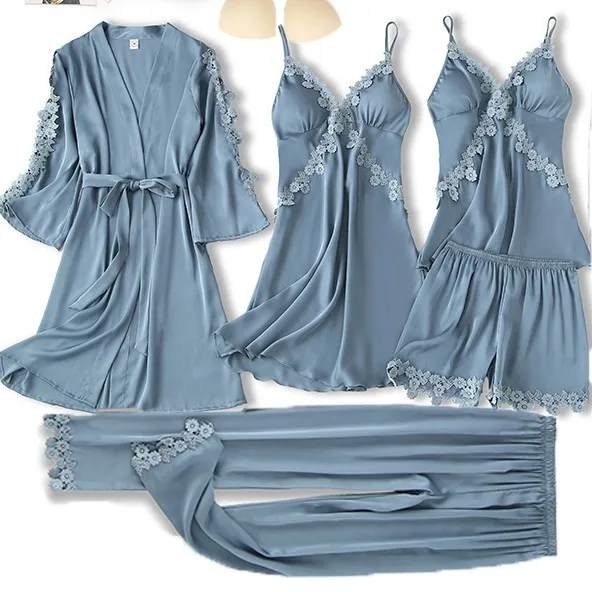Комплект женский атласный, с V-образным вырезом, кружевной, 5 шт.