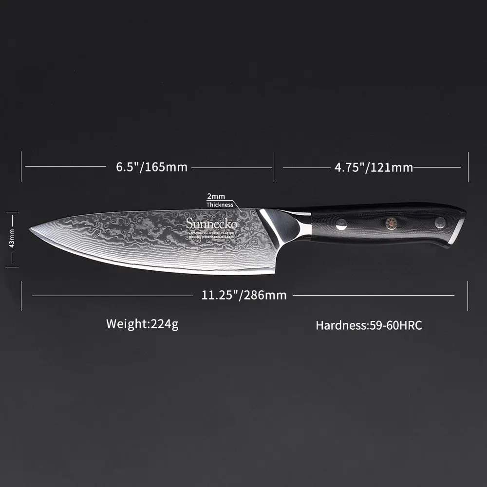 Кухонный нож шеф-повара SUNNECKO VG10, нож из дамасской стали 6,5 дюйма, японский инструмент для приготовления пищи, лезвие из сердечника G10, ручка для мяса и фруктов