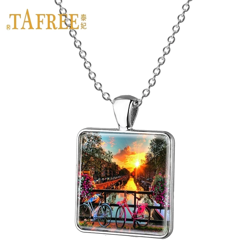 Квадратные Подвески TAFREE ручной работы ожерелье с цветком очарова...