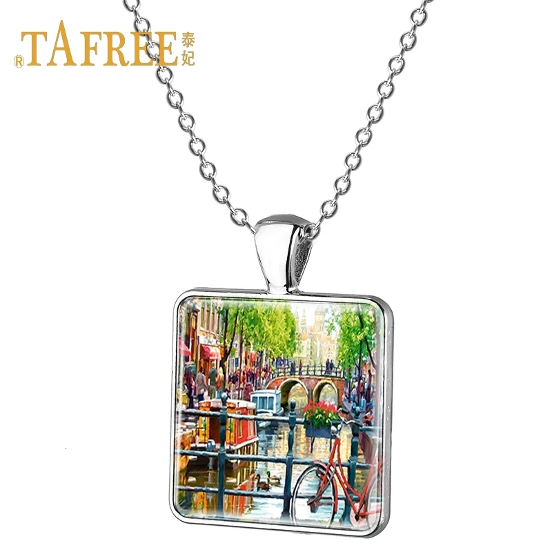 TAFREE красивый деревенский пейзаж иллюстрация кулон ожерелье белый снег Замок Горный дом планеты ребенок подарок ювелирные изделия E144 Изображения продуктов: