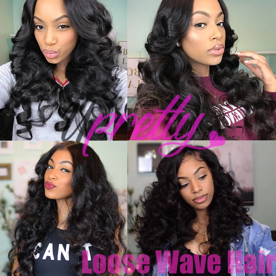 Upretty волос 5x5 Кружева Закрытие с пряди бразильских свободная волна пряди с закрытием человеческие волосы 3 пряди с закрытием