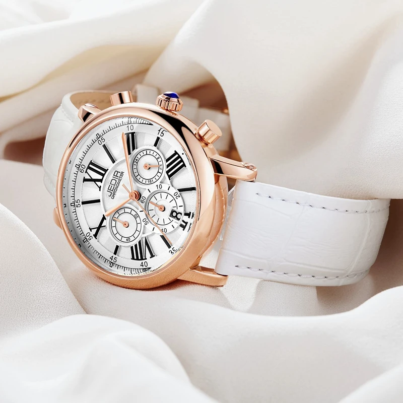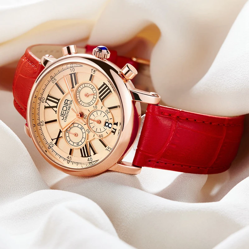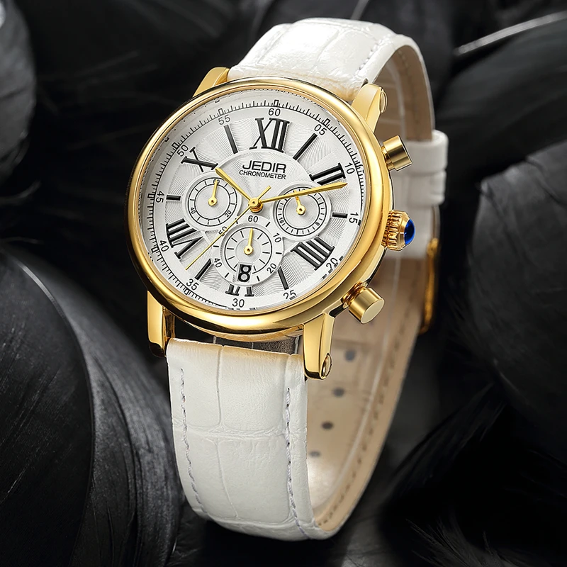Женские часы с кожаным ремешком JEDIR, винтажные многофункциональные кварцевые часы с настоящим календарем, женские наручные часы Montre Femme 6006