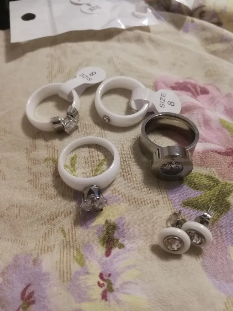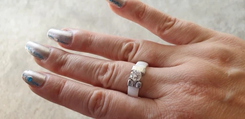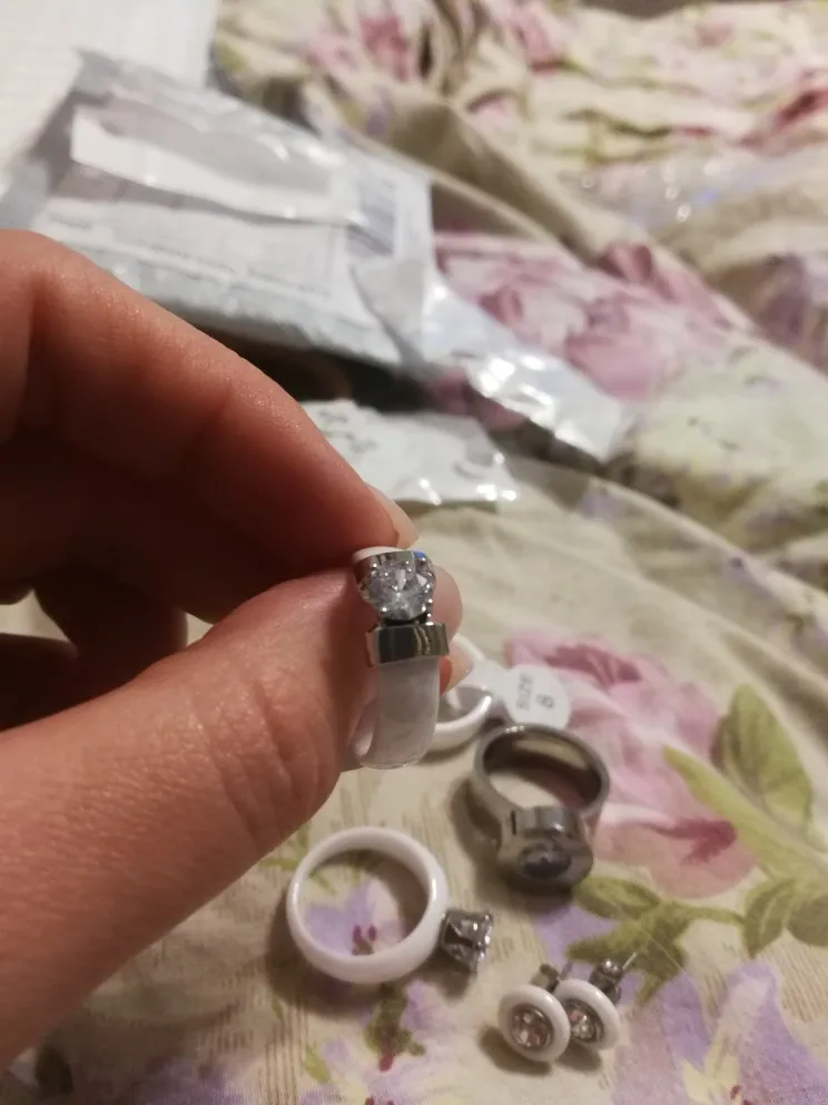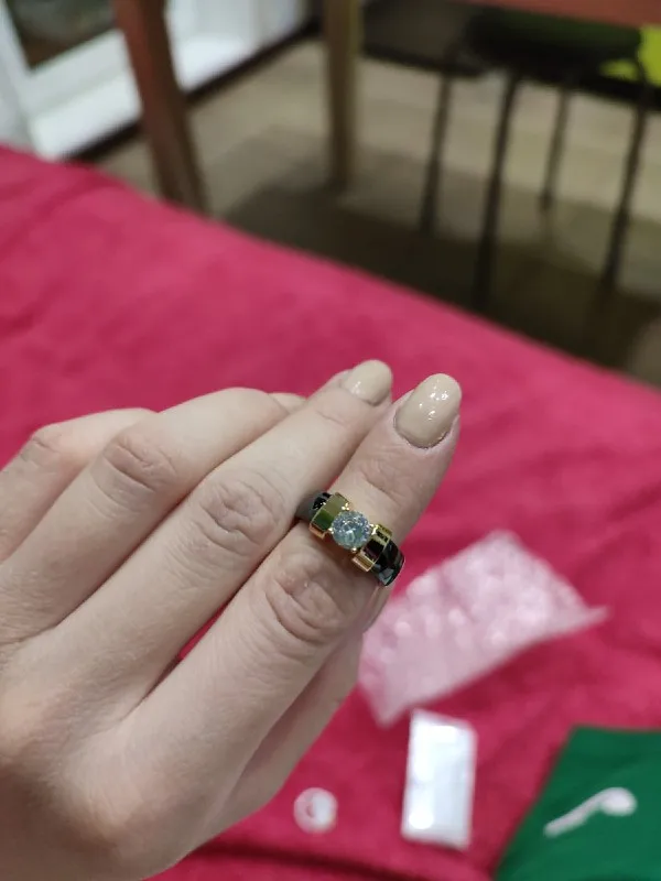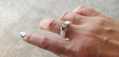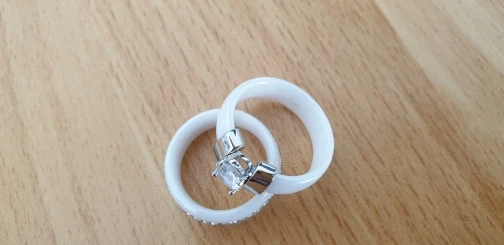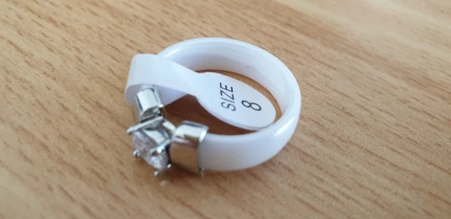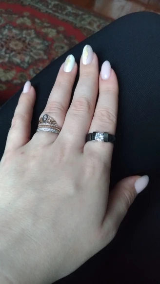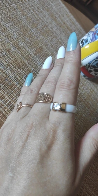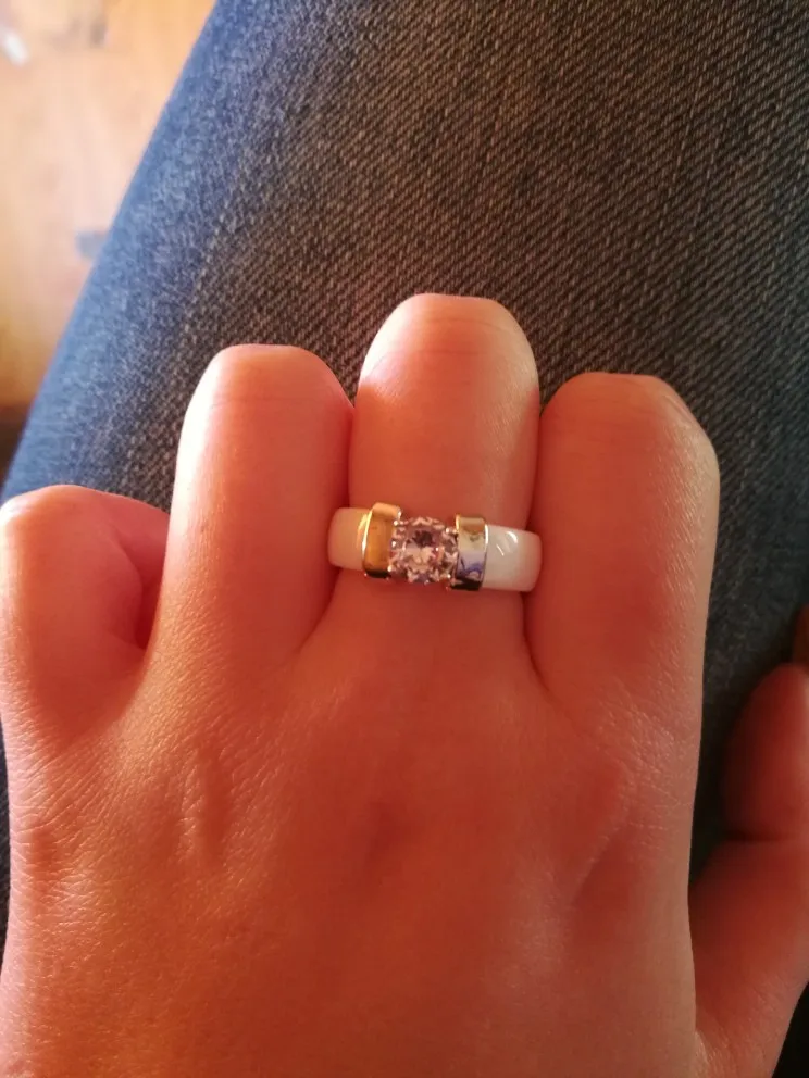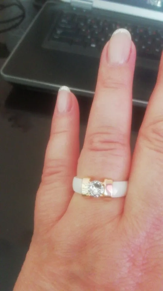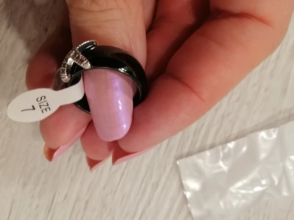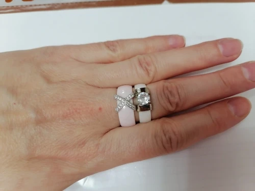 Я в диком восторге, особенно от кольца. Элегантное, аккуратное, на пальце совсем не мешает. Керамика совсем тонкая. Брала чёрное у другого продавца, небо и земля!!! Спасибо