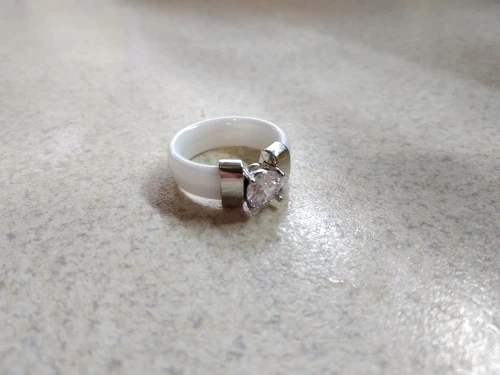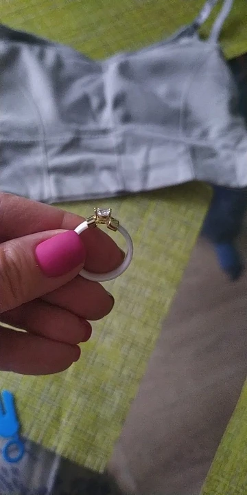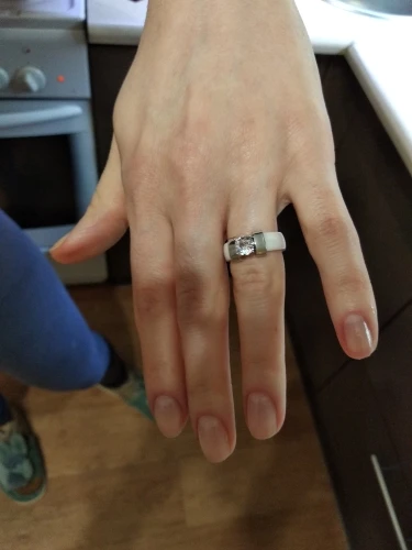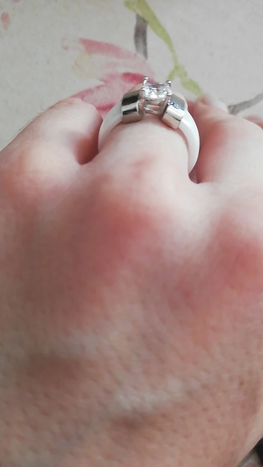 Продавец - молодец. Спасибо. Очень красивое кольцо. Всё идеально отшлифовано. И керамика идеально белая. И камень горит огнём.