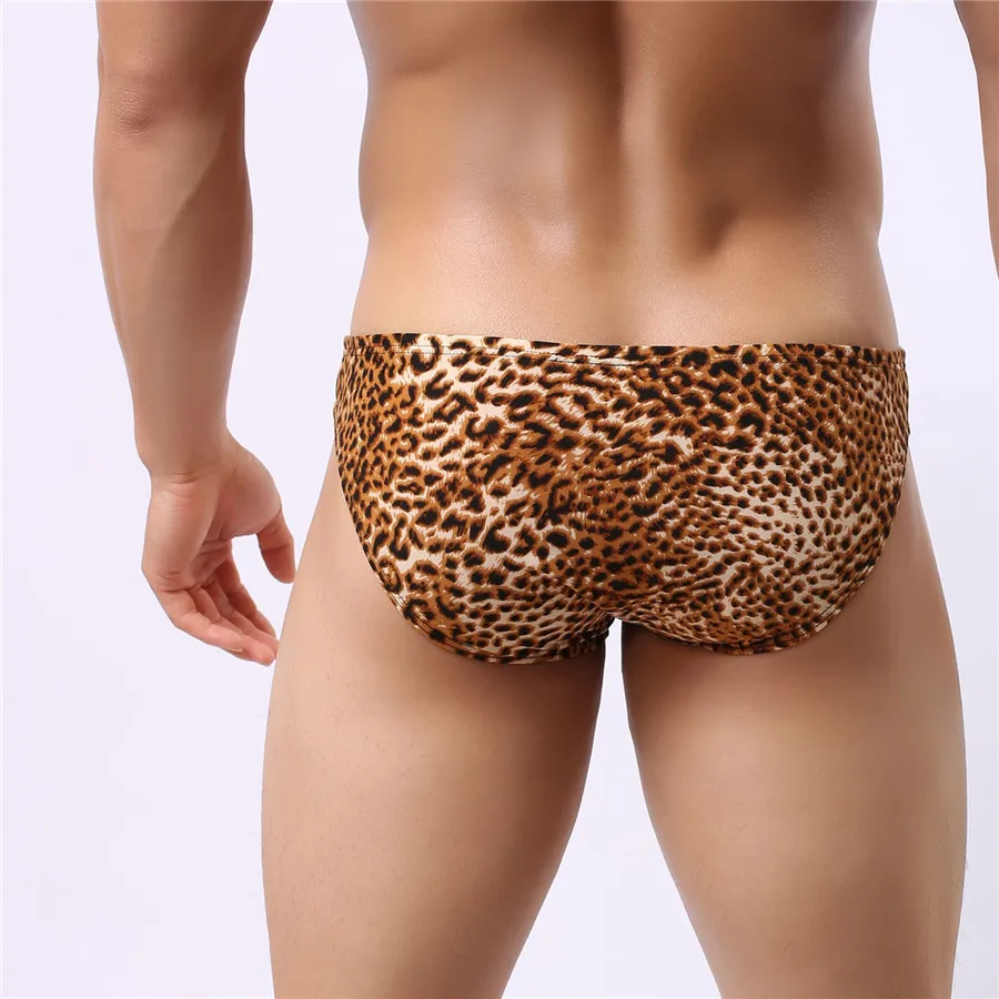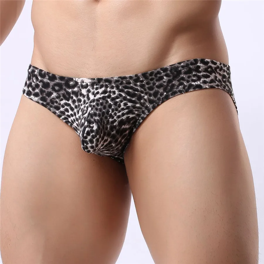 Трусы-брифы мужские с леопардовым принтом, пикантное нижнее белье, мягкие плавки