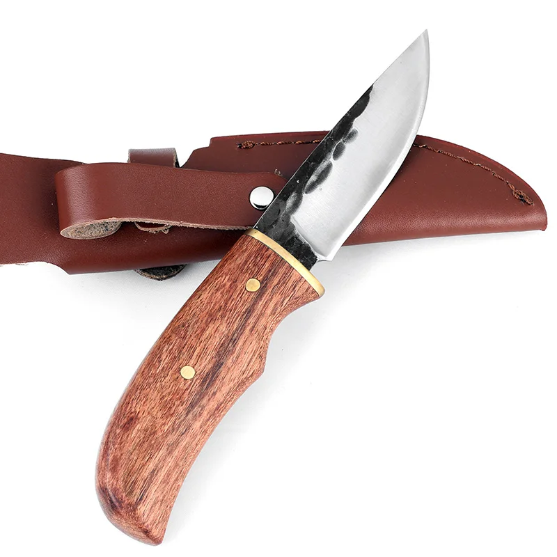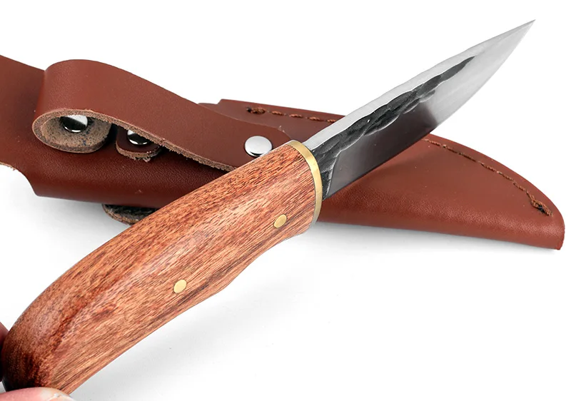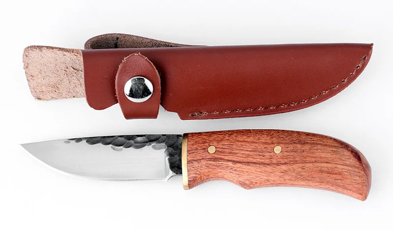 Охотничий нож KKWOLF, тактический карманный Клинок с фиксированным лезвием из высокоуглеродистой стали с ручкой из розового дерева, для выживания, кемпинга