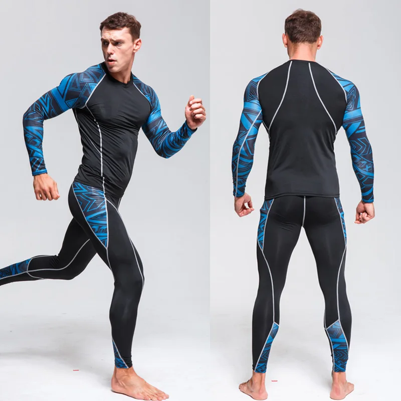 Для мужчин работает Набор для спортивного зала, для пробежки, длинный рукав, есть большие размеры, во-вторых skin Compression, Фитнес Рашгард для MMA Мужской быстросохнущая спортивный костюм