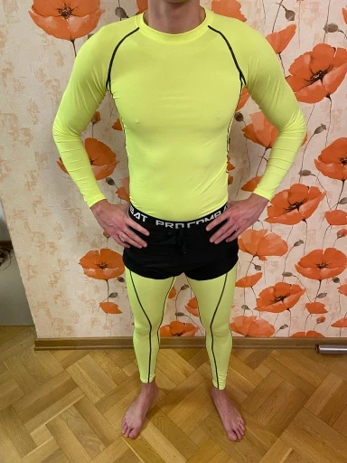 Отличный комлект. Рашгард облегат именно так, как надо, тайтсы тоже. Материал кажется долговечным, но скоро посмотрим в деле в спортзале. Мои параметры 176/75 видит в обтяжку, но так и должны сидеть компрессионные спортивные вещи.