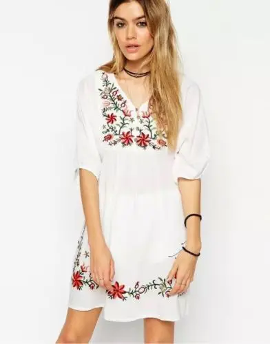 Лидер продаж 2020, винтажная Женская мексиканская Этническая вышивка в стиле хиппи, блузка в стиле бохо, мини-платье в цыганском стиле, бесплатная доставка