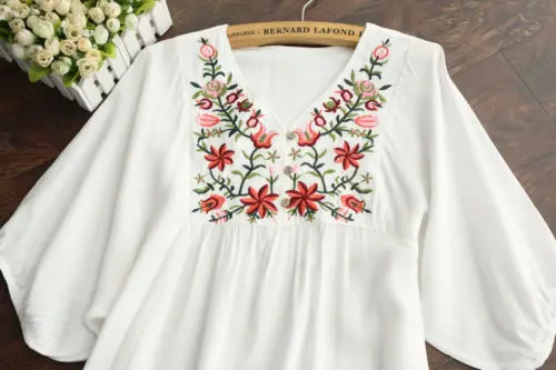 2021 Женская винтажная блузка с цветочной вышивкой в этническом сти...