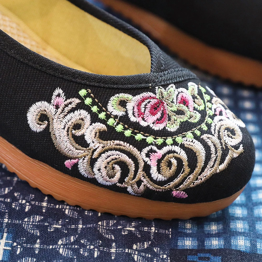 Veowalk новые китайские женские холщовые туфли ручной работы на плоской платформе с вышитыми цветами