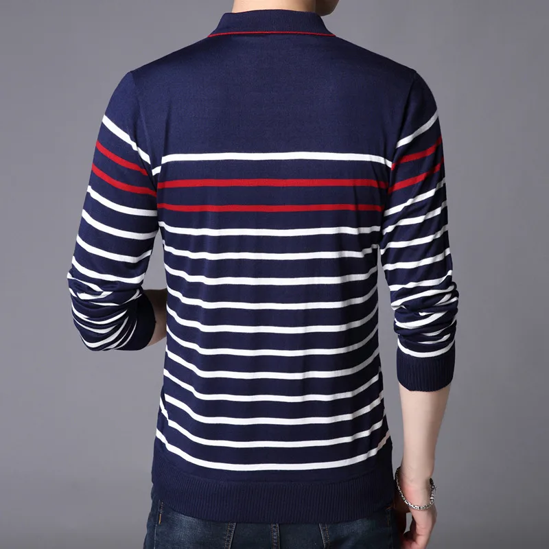 Рубашка-поло мужская в полоску, с длинным рукавом
