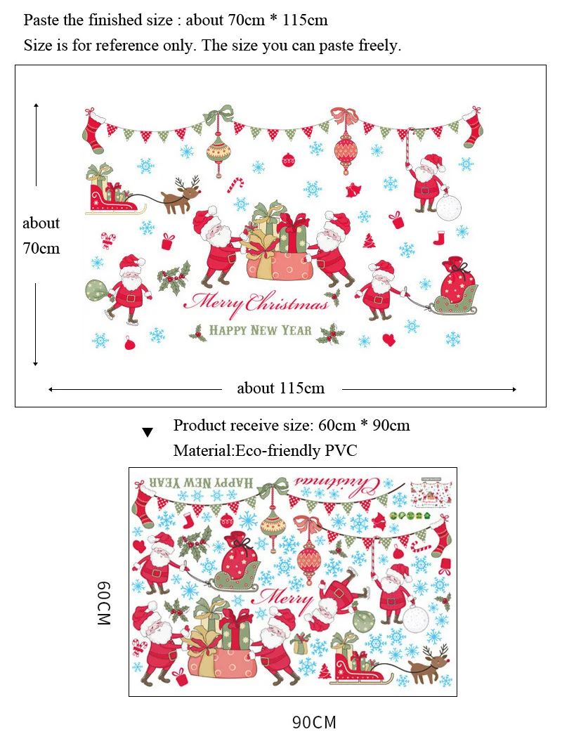 Виниловые наклейки на стену сделай сам Merry новогодние наклейки на окно, Дед Мороз, стекло, домашний декор, художественные Переводные обои украшения для дома