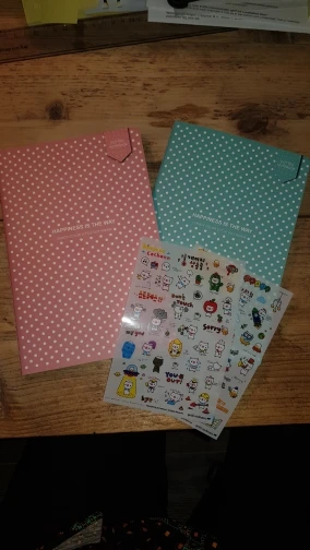 Обычная маленькая тетрадка, с мягкой обложкой, листы плотные. Так же продавец дал небольшой подарок в виде наклеек. В целом качество хорошее, товар пришёл целым и был качественно упакован, но доставка была уж слишком долгой.