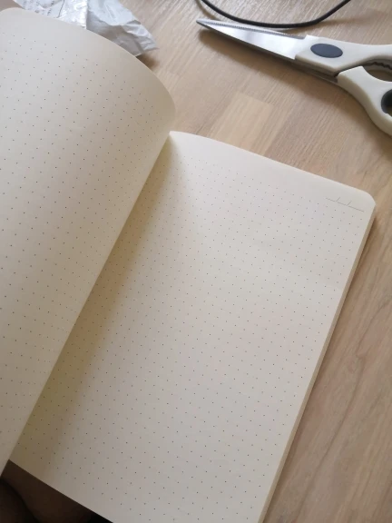 Хороший товар. Обложка тактильно приятная. Прошита тетрадь хорошо и качествено, и да это не блокнот, а именно тетрадь. Точки от начала и до конца. Упаковано хорошо. Продавец положил небольшой подарочек, милые наклеечки, на прозрачном фоне. Всё соответствует описанию. Цвет приятный. Покупкой довольна, продовца рекомендую)))