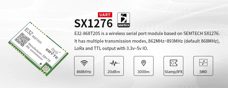 SX1276 868 МГц 100 мВт SMD беспроводной трансивер CDSENET E32-900T20S 915 МГц TTL 5000 м большой диапазон LoRa IPEX передатчик и приемник
