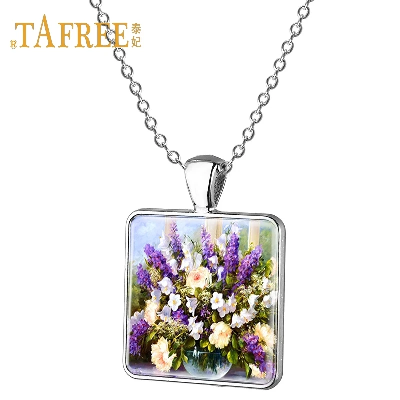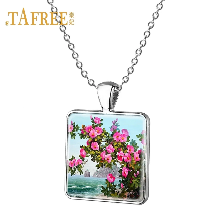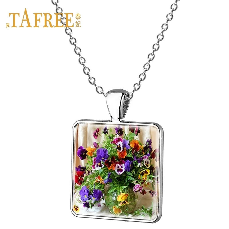 Квадратные Подвески TAFREE ручной работы ожерелье с цветком очаровательное женское ожерелье с юбкой с цветочным узором подарок женское ювелирное изделие E241