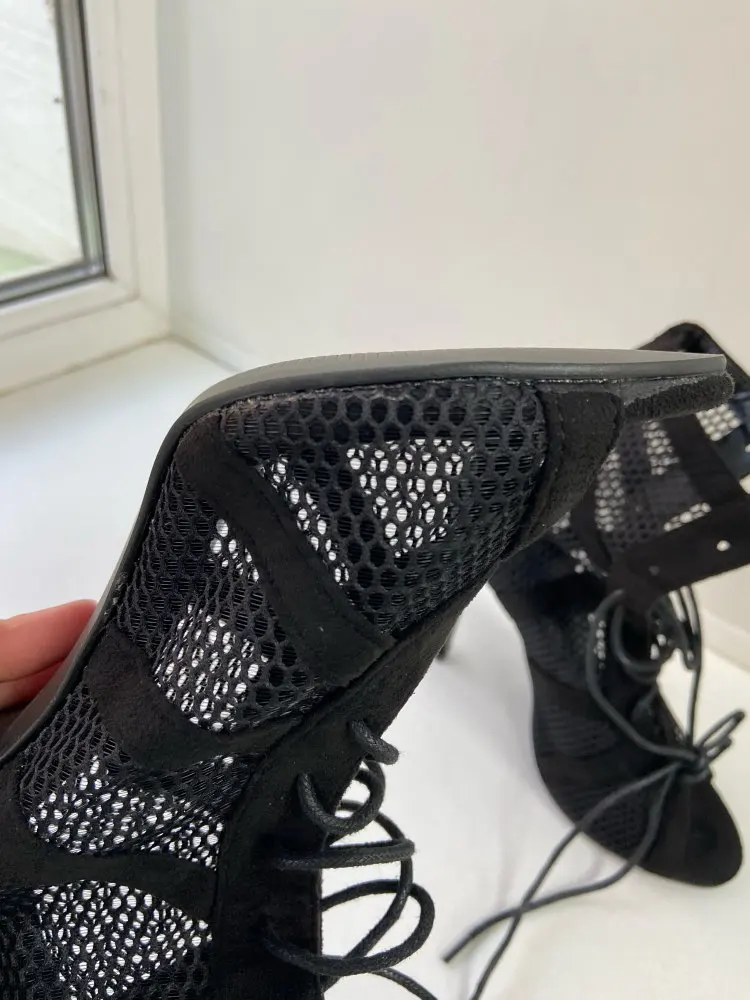 EilykenКоллекция 2022 года; Модные черные летние сандалии на шнуровке с перекрестной шнуровкой и открытым носком на высоком каблуке с ремешком на щиколотке; Открытые сандалии с сетчатой поверхностью