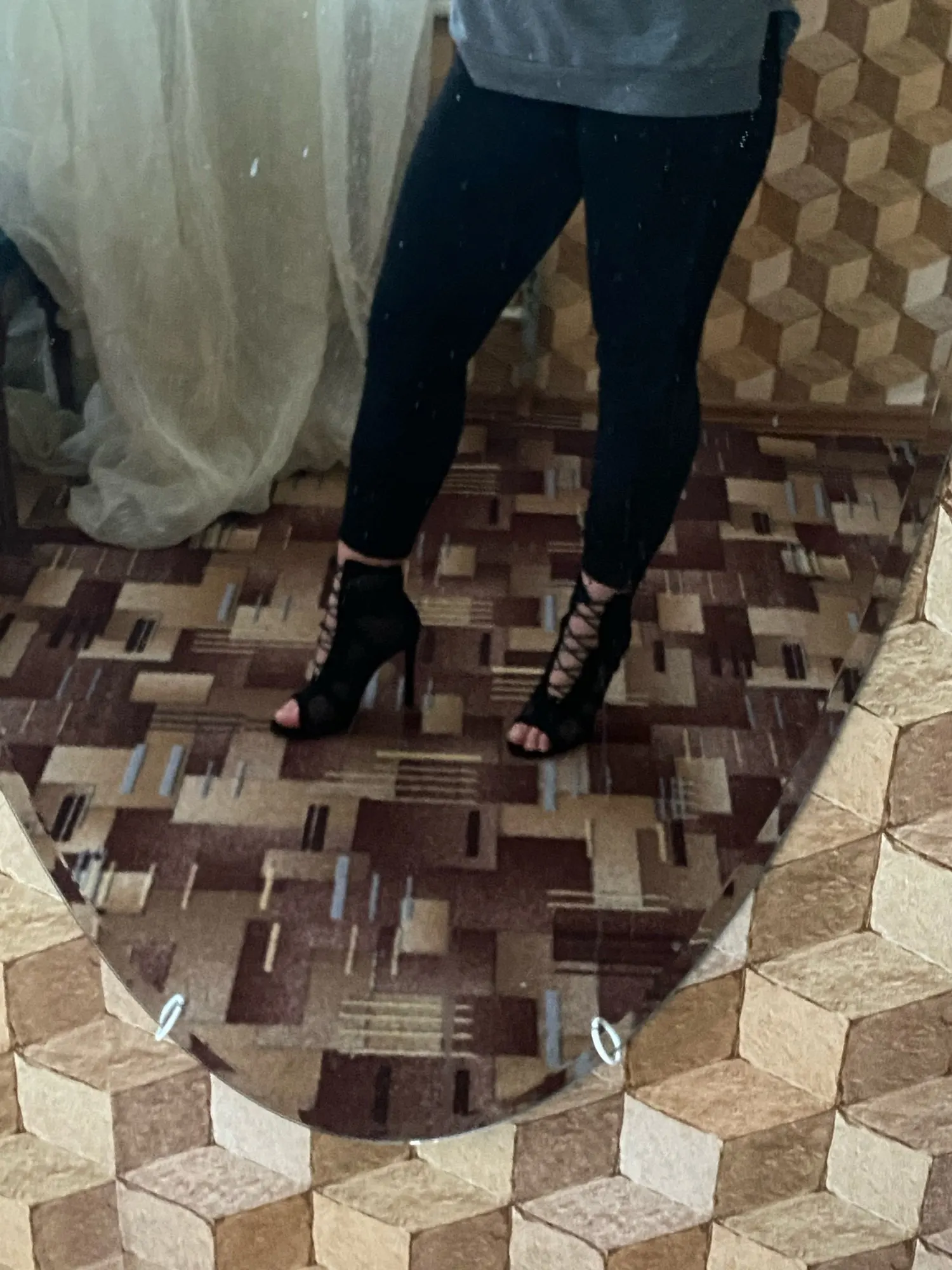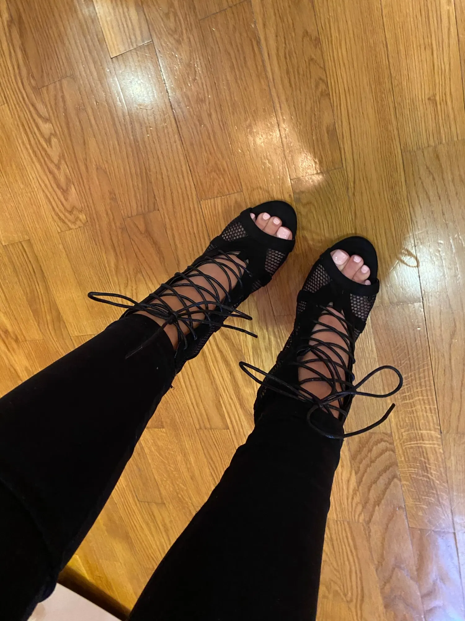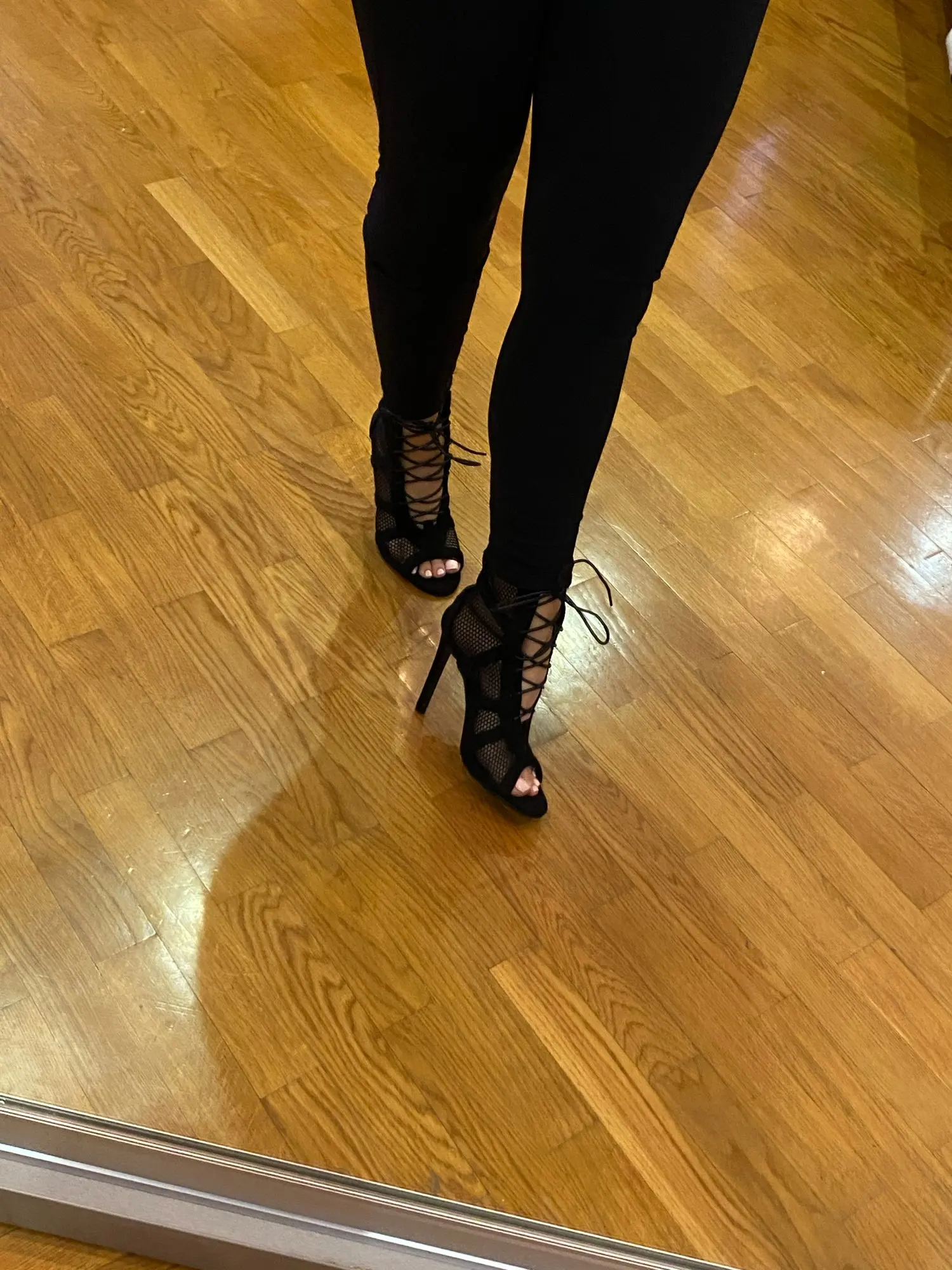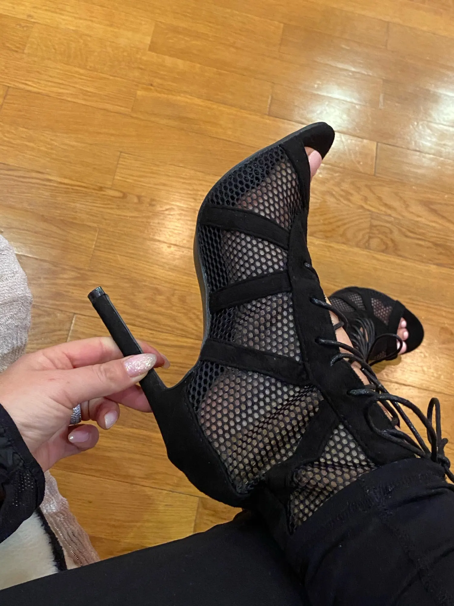 Туфли супер! Для high heels то, что нужно. Сомневаюсь, что шнурок долго прослужит, но сами туфли сделаны очень качественно. Мой размер 39, заказала у продавца 9, все подошло. Заказала 01.01, пришли 11.01 - всего 10 дней доставка!
