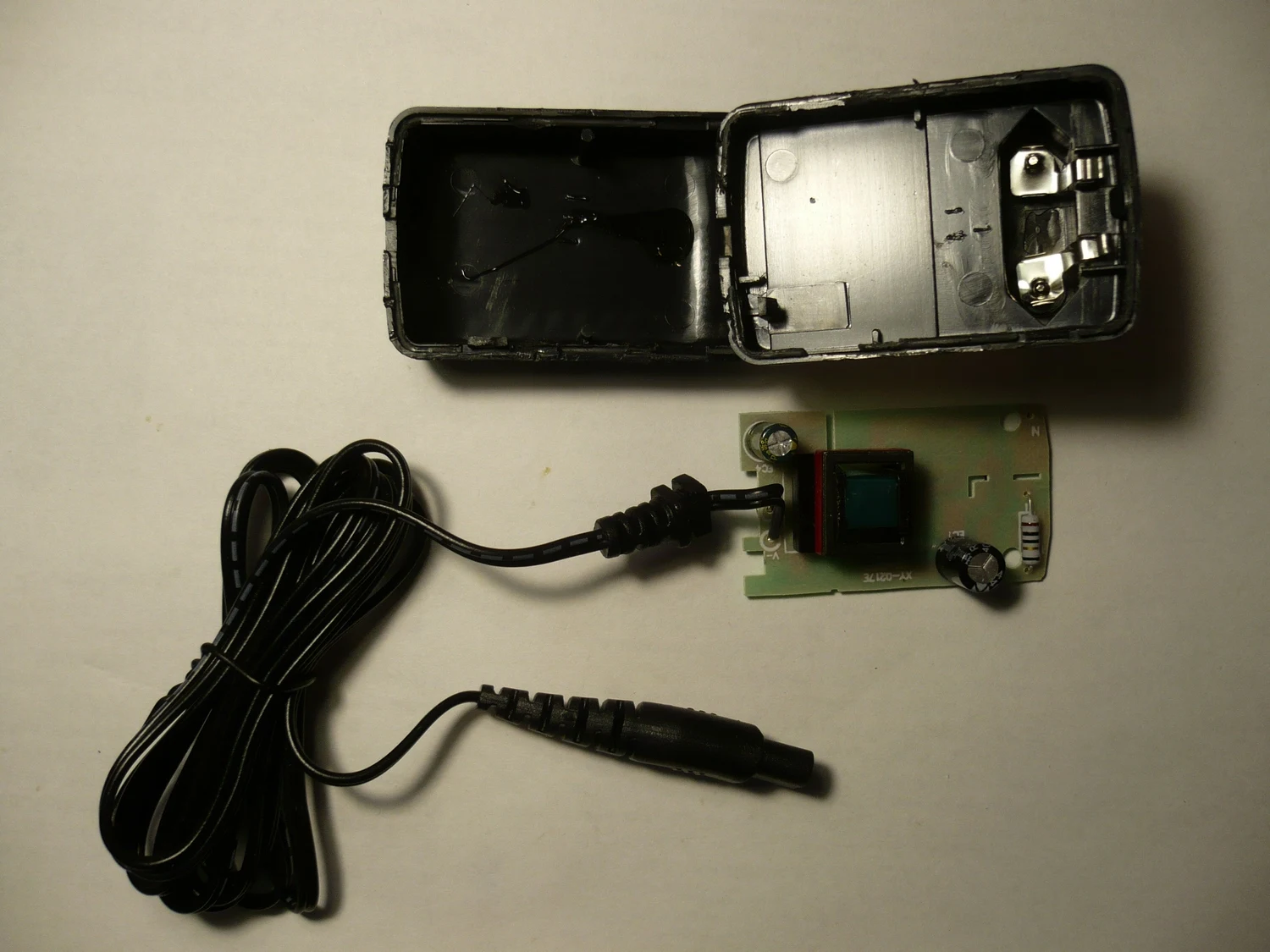 Работает, изготовлена аккуратно для тех, кто с паяльником и электроникой дружит. Внутри литиевый аккумулятор, емкость которого сейчас проверяю в Аймаксе. Можно поменять на аналогичный. Машинка разбирается не просто. Сначала открутить сзади два самореза, снять ножи и изнутри (очень аккуратно) поддеть пару защелок черной пластиковой вставки, на которой надпись фирмы. После таким же образом снять вставку на защелках, которая вокруг кнопки на верхней крышке. У нее защелки спереди сбоку (фото), поддевать изнутри спереди тонкой отверткой. Под ней увидите, в передней части еще два самореза, которые выкрутить и вуаля, аппарат разобран. Блок питания на 5 вольт, 1А, заклеен. Разбирал тонким ножиком, аккуратно по периметру отжимая бортики. Пластик хрупкий! В блоке питания электролиты просятся на замену с увеличением напруги, остальное потянет. Смазку рекомендую отечественную "SILICOT", Питер, WWW.SMAZKA.RU