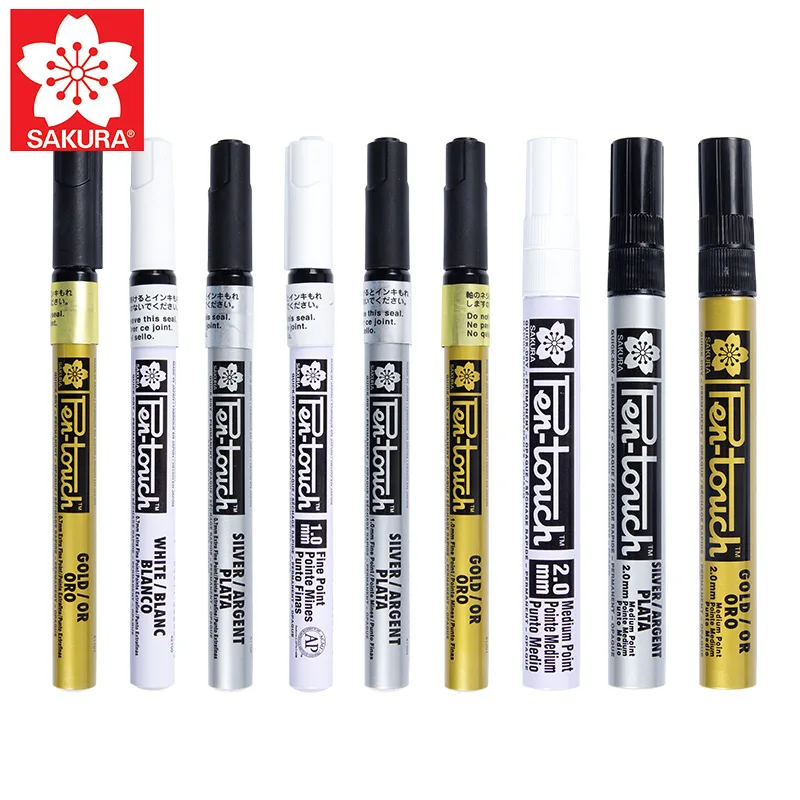 Sakura Pen-Touch Paint Marker 3 шт.лот золотистыйсеребристыйбелый 0,7 мм1 мм2 мм отметка на любом стеклетканиметалле