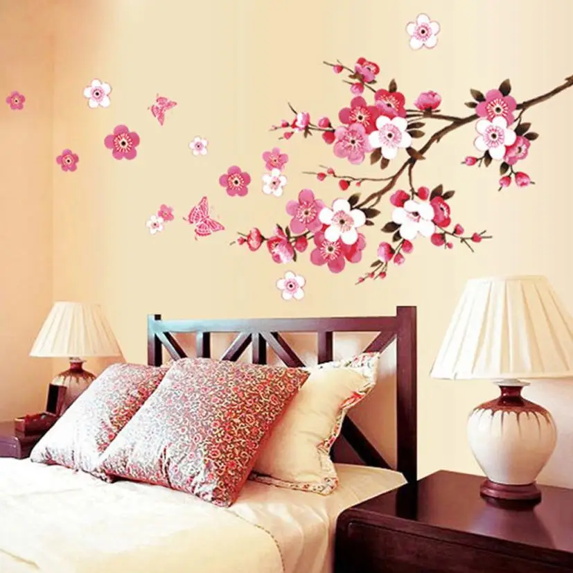 Наклейка на стену в комнату Цветок персика Бабочка бумажная наклейка для детской комнаты DIY Наклейка на стену Etiqueta Da Parede 18JAN26