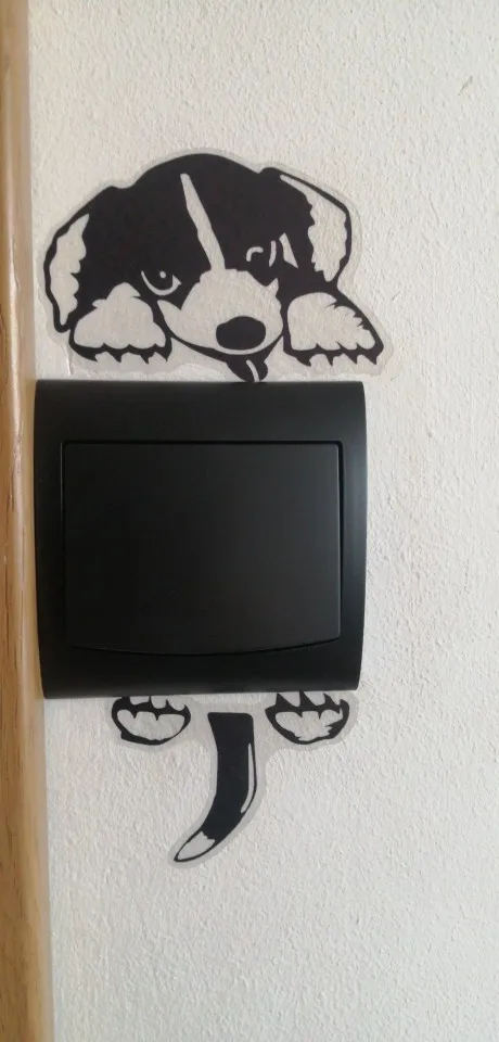 Мультяшная Съемная Милая Черная Собака Щенок розетка переключатель Настенная Наклейка виниловая наклейка домашний декор Животные наклейки на стену