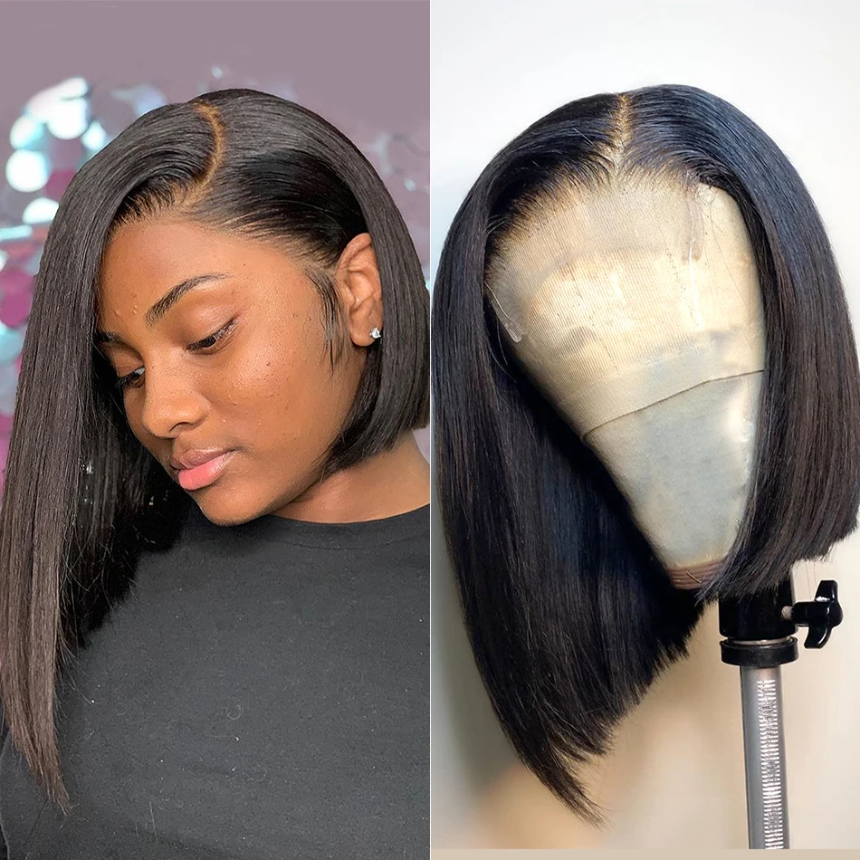 Дешевые 4x 4/13x 4 человеческие волосы на шнурке, парики с тупым вырезом, парик Боб, перуанские прямые волосы, парики для чернокожих женщин, человеческие волосы Remy, парик