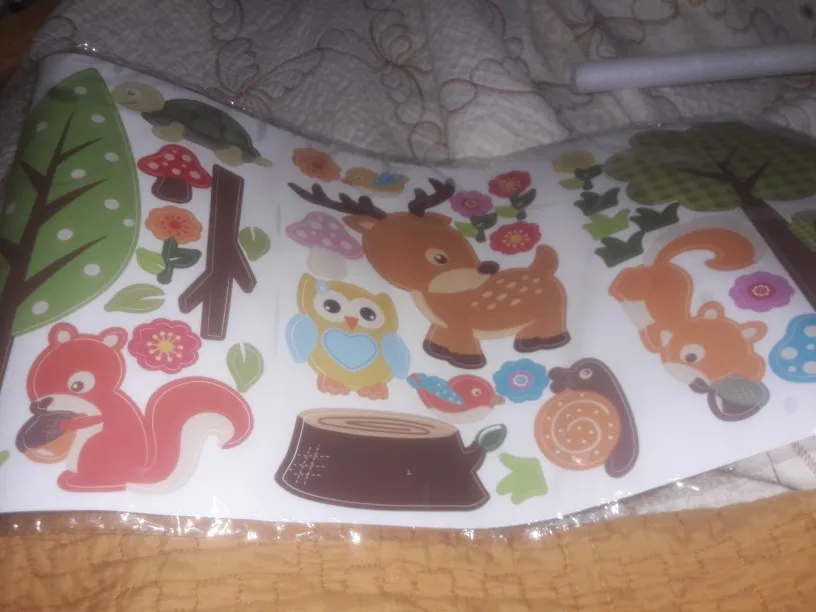 Наклейки пришли очень хорошо упакованы , респект продавцу ! Ожидала немного больше размер ( к примеру листочки деревьев очень маленькие ). А так все понравилось !