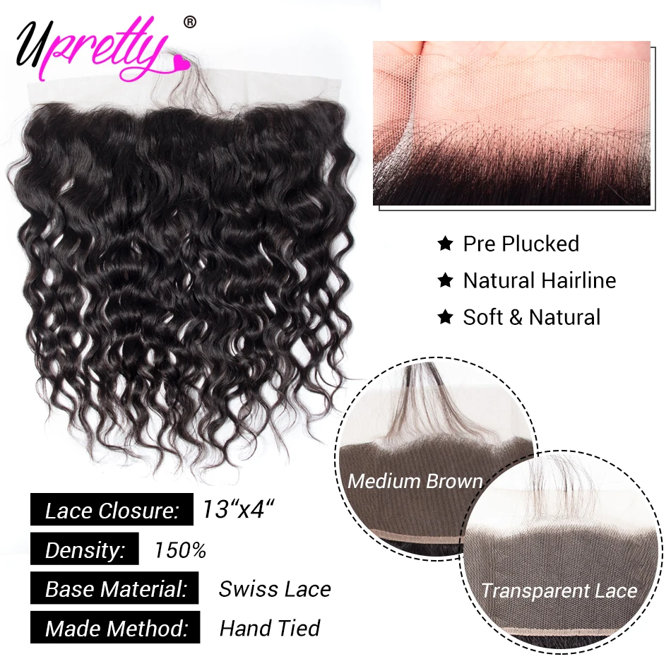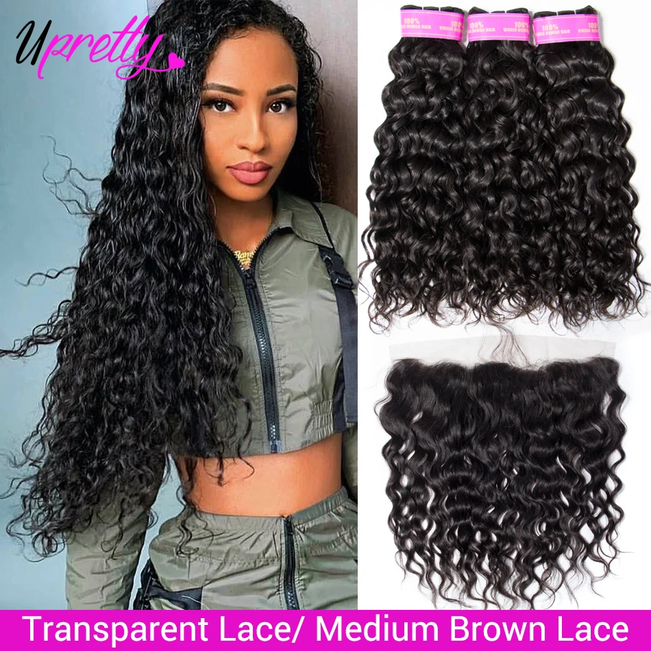Upretty волосы волнистые пряди с фронтальной бразильской влажной и волнистой пряди человеческих волос с HD прозрачной кружевной фронтальной застежкой