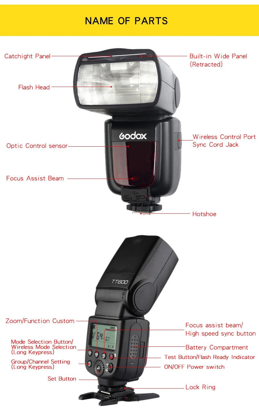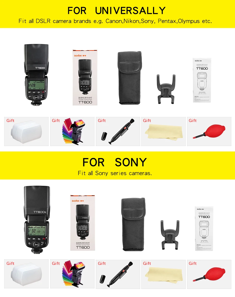 Вспышка Godox TT600S TT600 для Canon, Nikon, Sony, Pentax, Olympus, Fujifilm со встроенной беспроводной триггерной системой 2,4G GN60