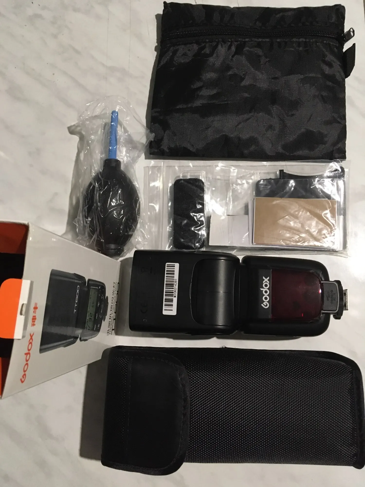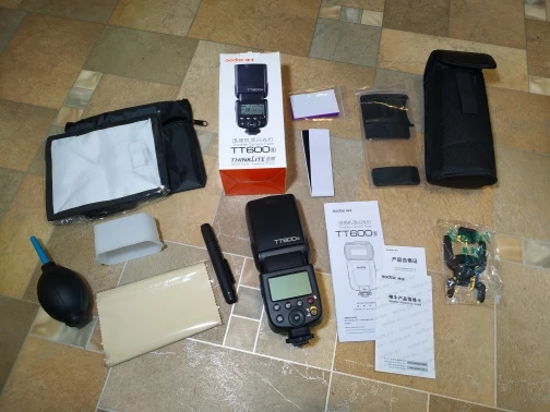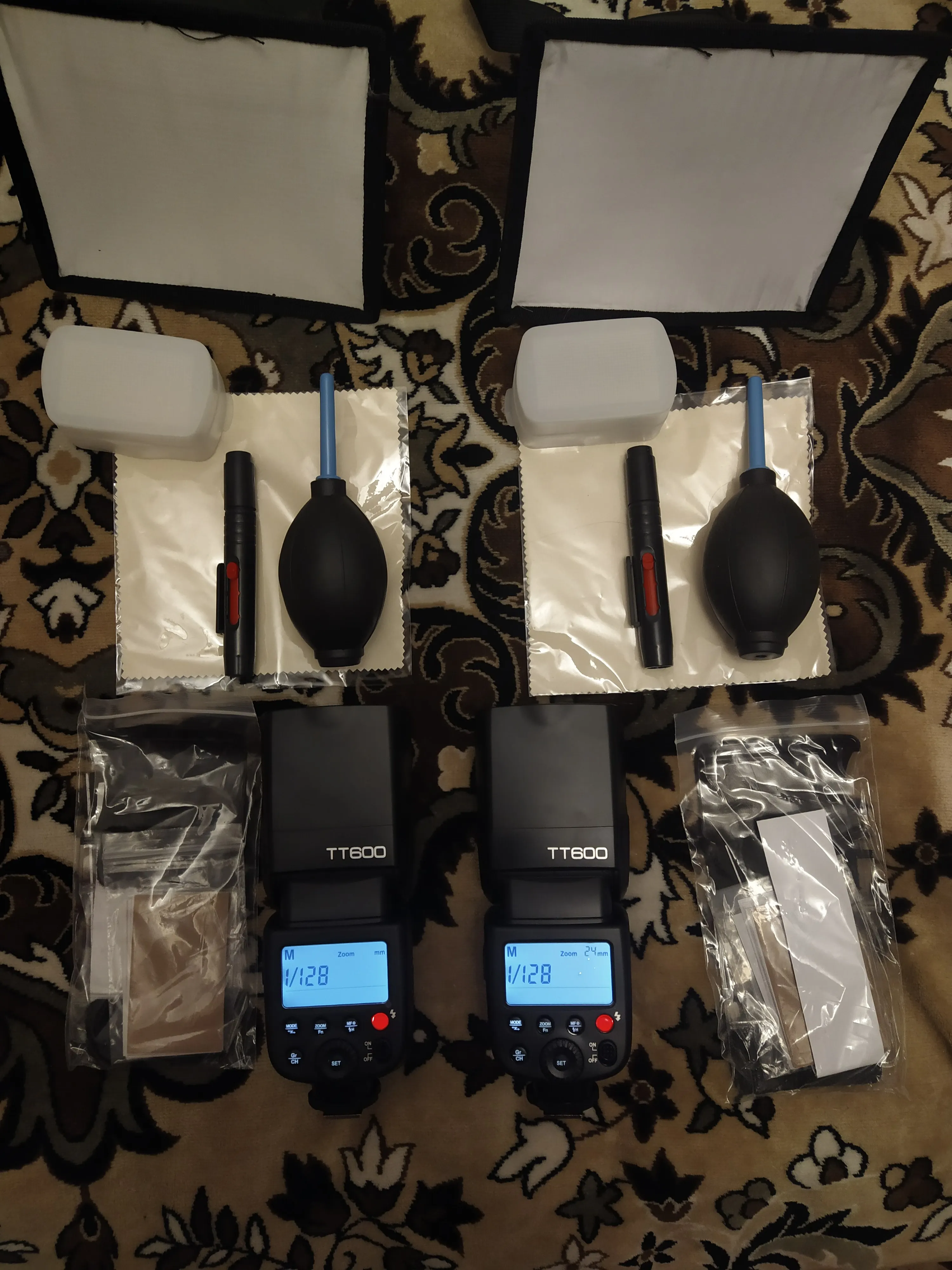 Вспышка пришла очень быстро, все работает, в комплекте чехол и ножка. Других подарков за одну вспышку нет. Вспышка полностью мануальная, настроек минимум. От простого синхронизатора godox ct-16 встроенный радио приёмник не работает, видимо только от тех что идёт в комплекте.