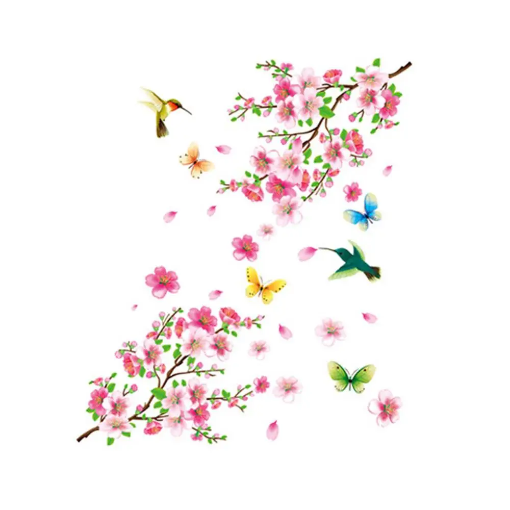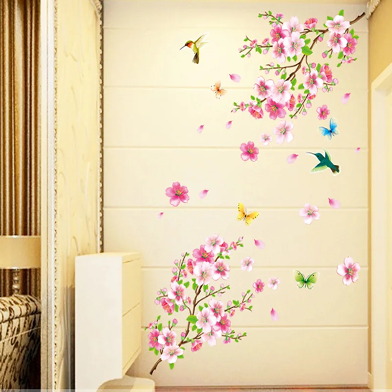Большие элегантные наклейки на стену HonC, изящные брендовые Стикеры с цветами персика и птиц, романтические украшения для гостиной