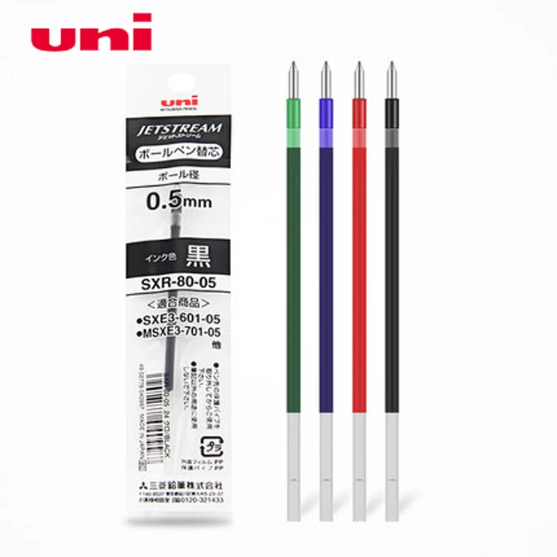 Стержни Uni SXR-80-05 для шариковой ручки MSXE5-1000-05 мм, 6 шт.лот, 4 цвета (черный, красный, синий, зеленый) на выбор