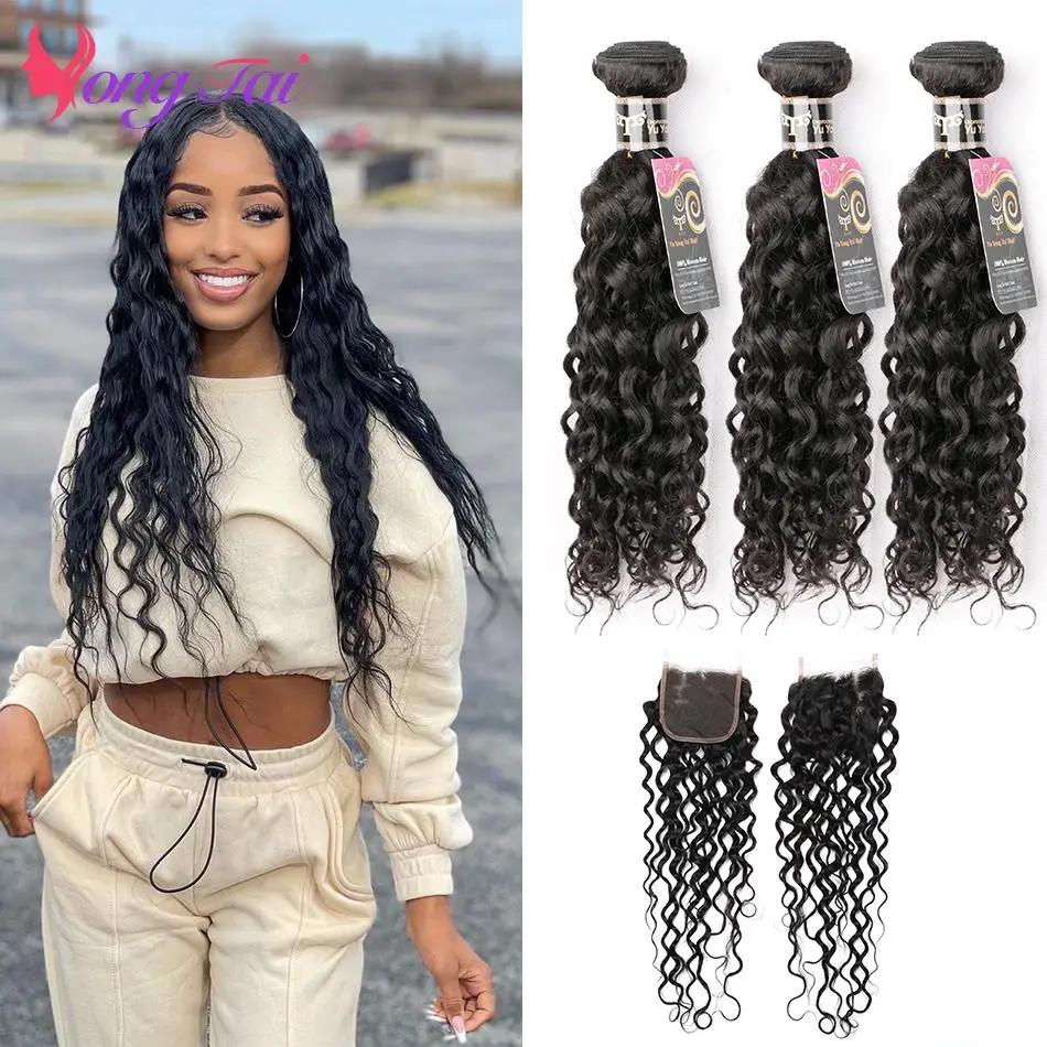 YuYongtai малазийские волнистые волосы 100% человеческие волосы пряди с Кружева Закрытие сильно волнистые натуральные кудрявые пучки волос пряди не Реми вьющиеся